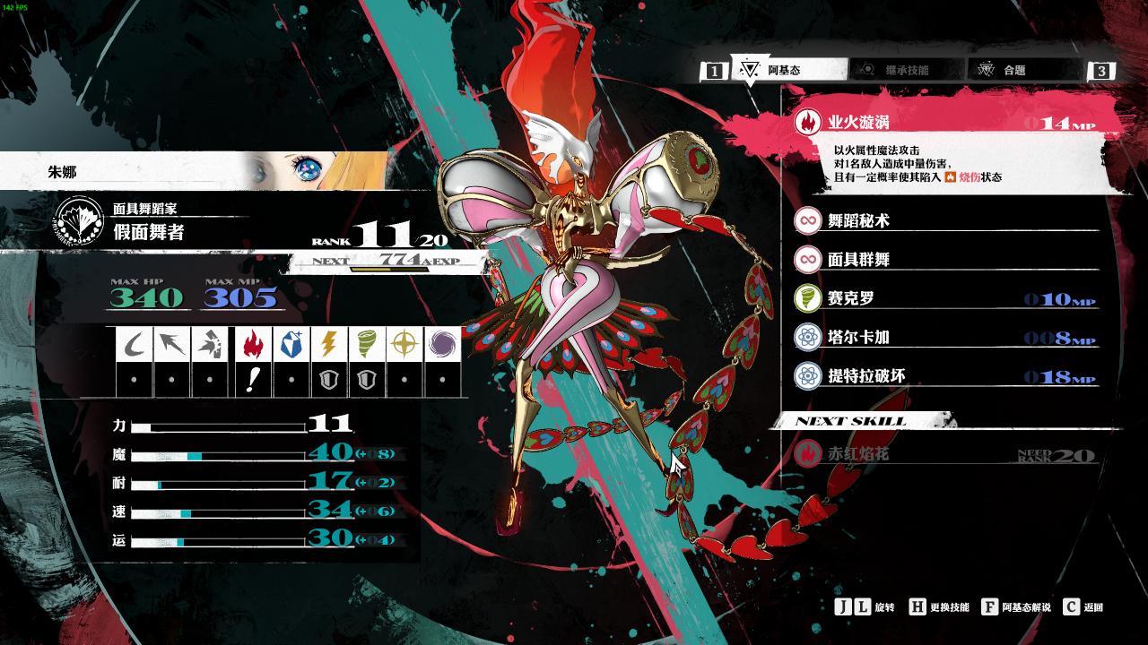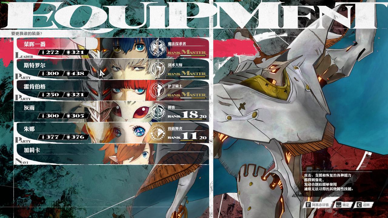 此外,值得一提的是,當王都的當紅歌姬「朱娜」加入你的隊伍時,你會發現她的阿基態機制相比其餘人(包括你)的阿基態,有着較爲不同的特殊裝備,而這個裝備也的確頗有《P5R》的「人格面具」元素在裏面。