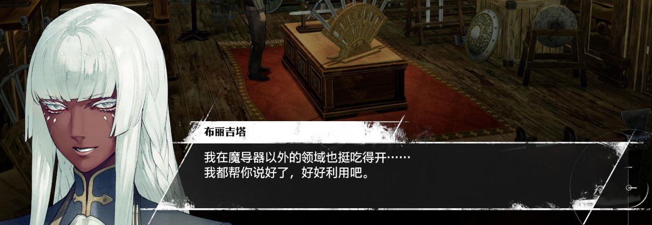 直到小狗被聖教一方綁走後,她也重拾勇氣,想要反抗聖教,展露出十足的個人魅力。況且她人也特別大方,即便這份兼職什麼也沒幹,老闆娘還是義不容辭地給我們付了高達1W塊的兼職費。隨着等級提升,不僅在自家魔導器商店給打骨折(最終能買到特殊魔導器),得益於商會的人脈,布麗吉塔對全國各大城鎮的武器店和裝備店都下達命令,要求看到你就會給打折扣。