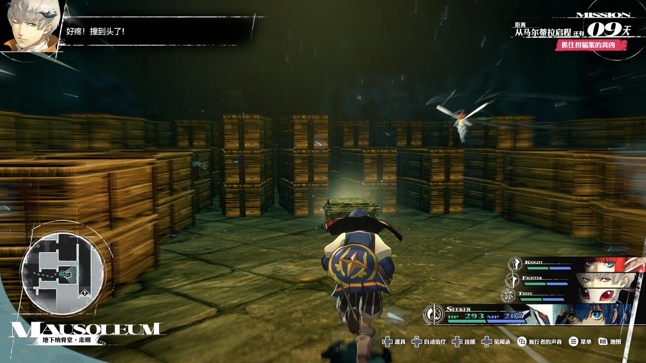畢竟在我玩到布萊港附近的某一處迷宮時,我就被那辨識度較低的隱藏狗洞給折騰得快要自暴自棄了。有時候你看小地圖,寶箱就近在眼前,卻隔着一堵牆阻礙了你的探索,你下意識地去尋找分岔路,繞了一大圈,直到把你繞暈了你才迫不得已回到原點,當你把手柄搖桿往下拉時,你才發現腳底下就有一道隱藏的狗洞等着你鑽。