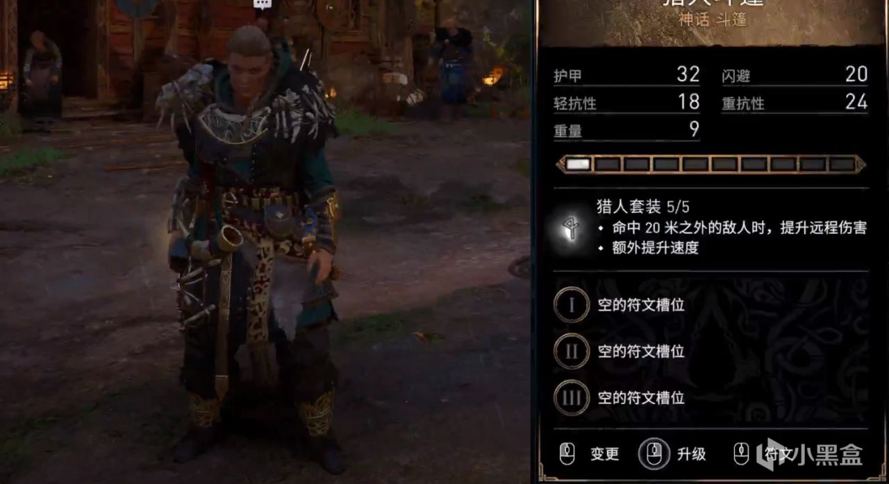 首先是最容易获得的猎人套装。要我评价的话,丑的一比,套装效果作为射手来说倒是还真不错,可惜太丑,还是幻化着用比较合适。话说回来英灵殿这么狂战士的刺客信条应该没人纯射手吧~