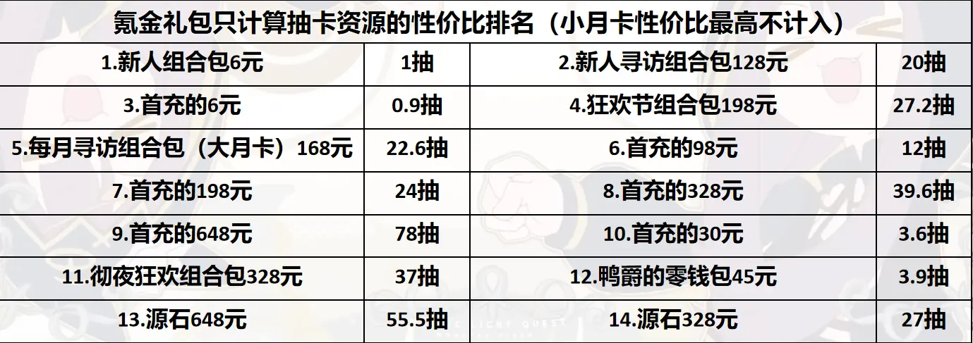 按照抽卡性价比排序,不计算材料。请谨慎氪金不要上头。
