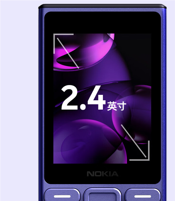 诺基亚125正面拥有2.4英寸大屏,LCD材质,搭配大面积的孤岛式九宫格键盘,新的定制大字体,取代诺基亚Pure字体。