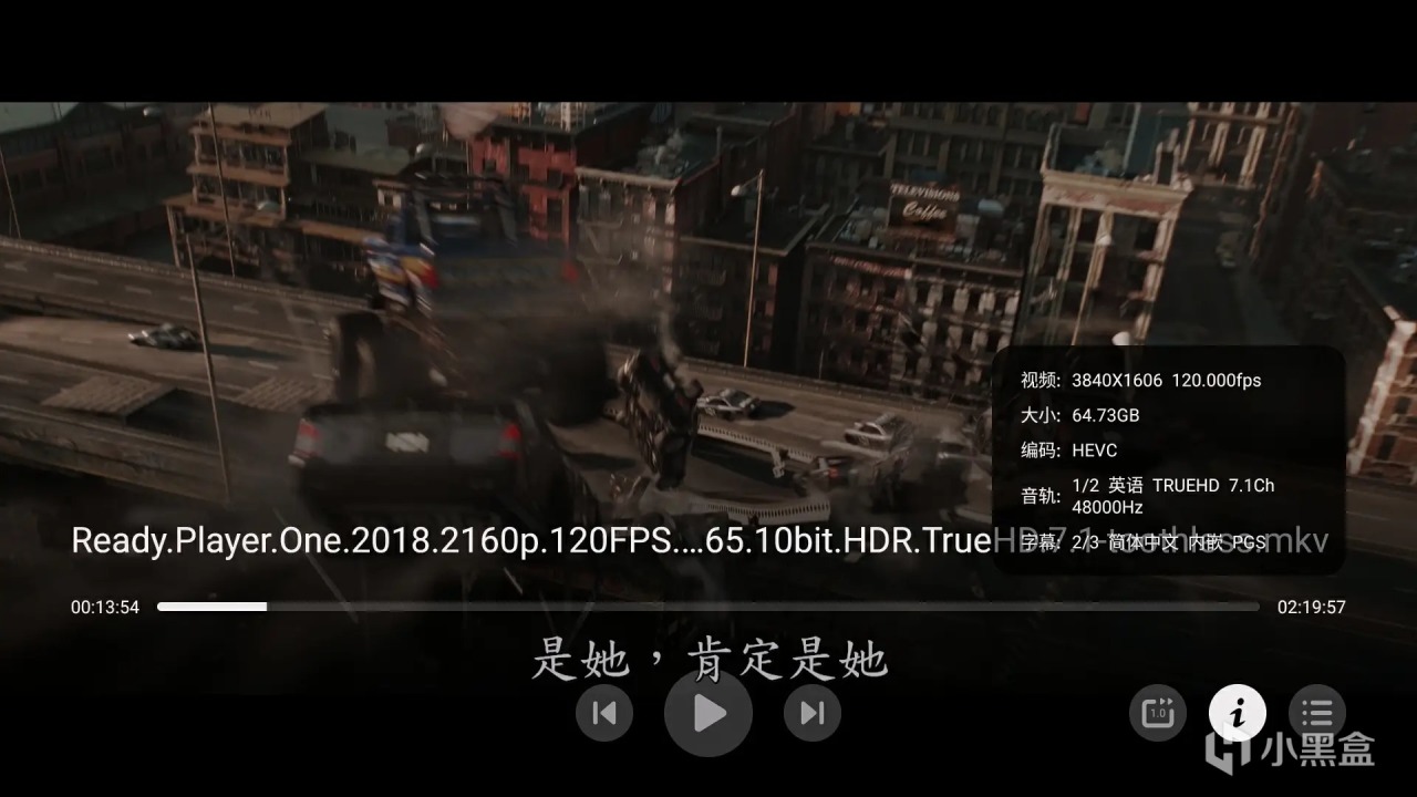 ▼在 RK3588S 强大算力支持下, 海美迪 Q5 六代在原盘目录上的读取非常快,播放效果也相当丝滑、拖拉进度也没有出现卡顿,字幕、音轨、声道都可以自由选择,使用体验比专业碟机还舒服。但是设备目前并不支持目录导航,只能利用时间跳转。