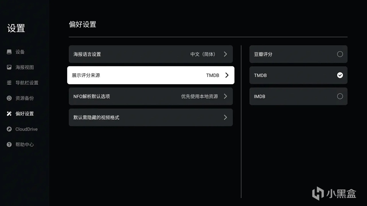 ▼海美迪影视库 3.0 提供三种刮削信息来源,包括豆瓣、TMDB、IMDB。豆瓣的优势是刮削速度快,对国内的影视片源信息更新更及时。后两者的资料库更全,尤其是多语种资源。