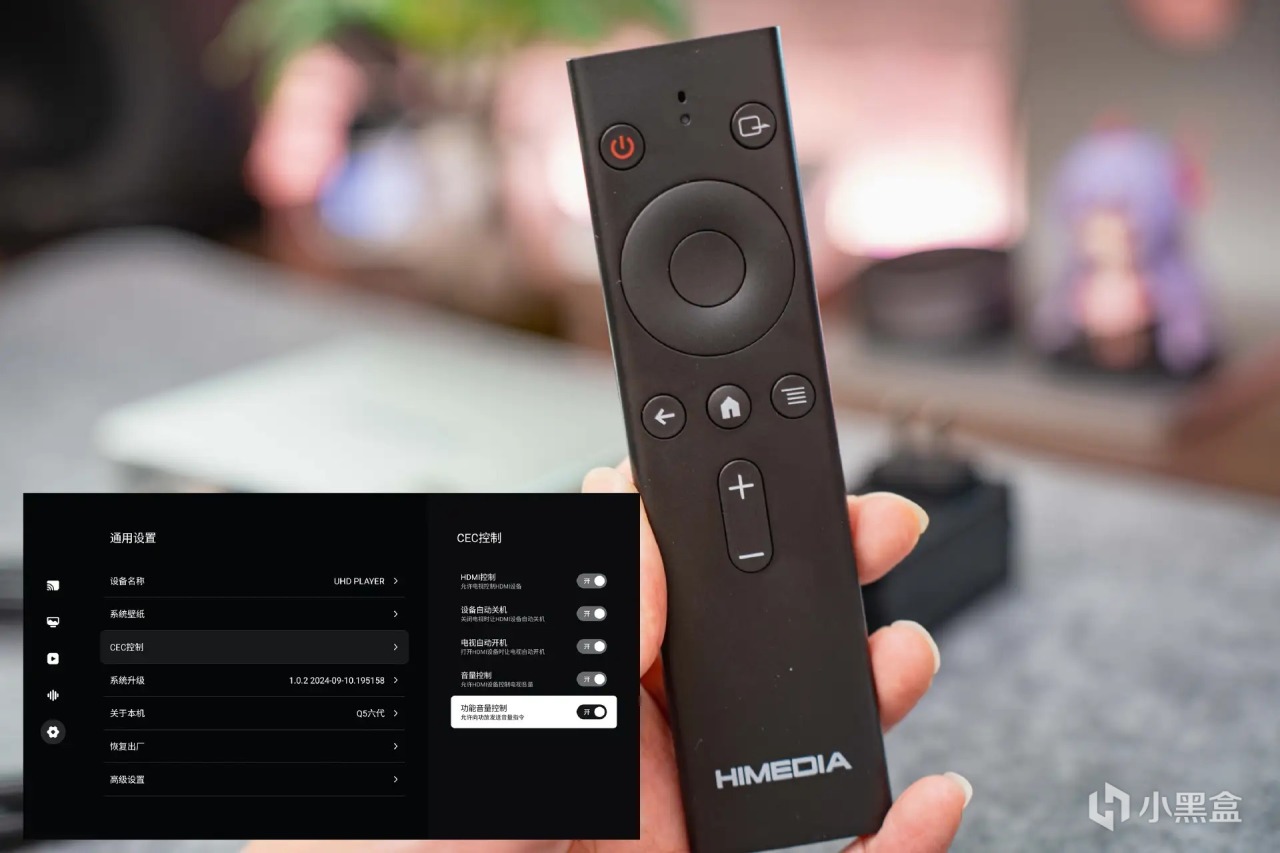 ▼配送的播放器支持 CEC 控制,通过遥控器同时控制播放器和电视,实现两者同时开关机,避免不同设备使用不同遥控器的繁琐。