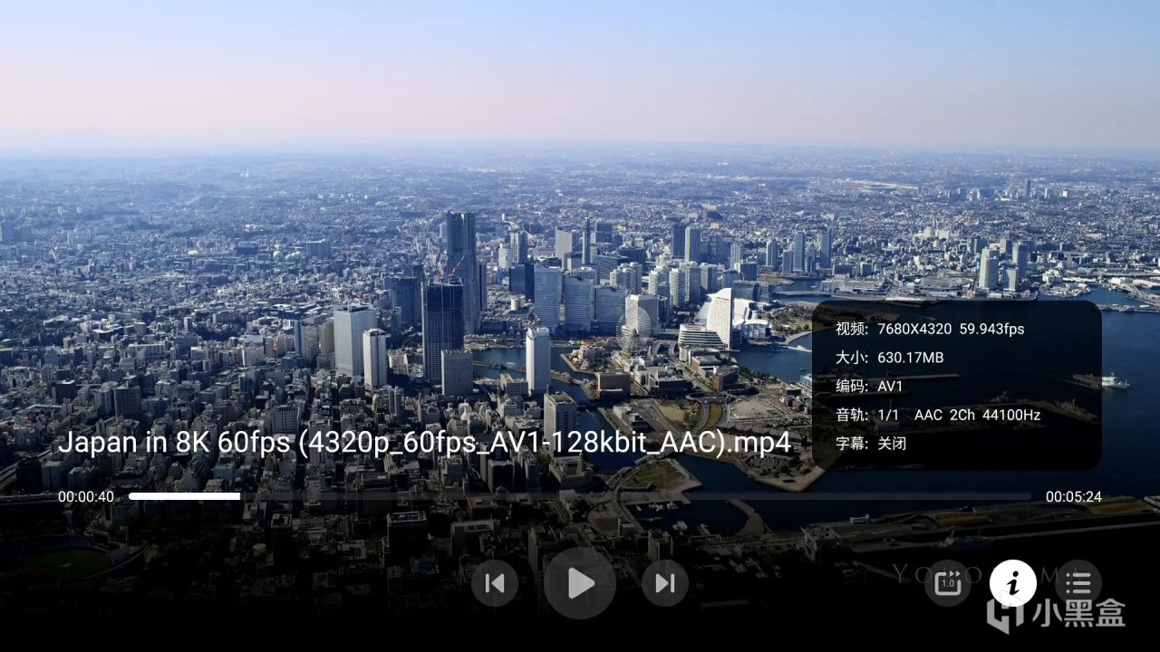 ▼Japan(8K / 60FPS / MP4 / AV1 编码),可以正常播放,但音频画面都出现明显卡顿,看来 海美迪 Q5 六代对 AV1 编码视频上限就是 30FPS。