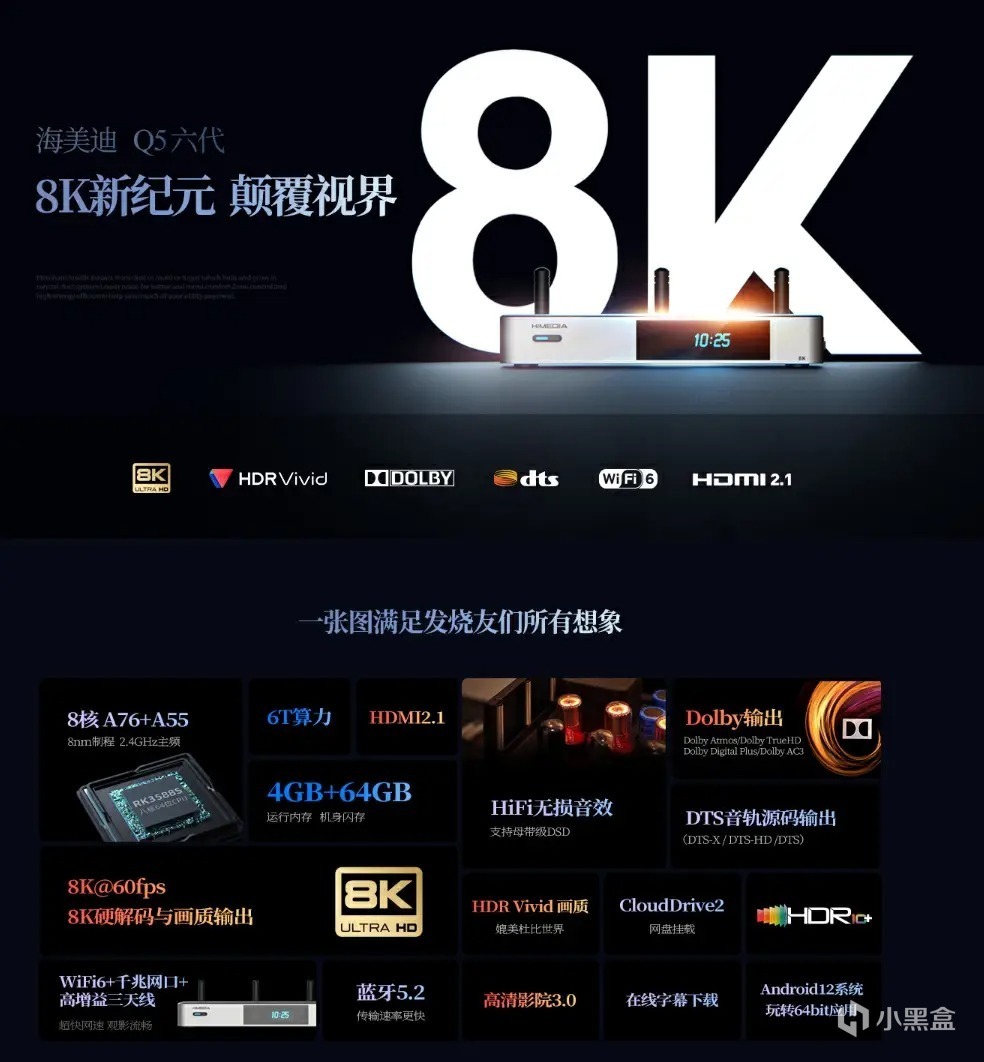Q5 系列是海美迪家用播放器的标杆系列,六代在性能上做到了新的高度,具体配置如下