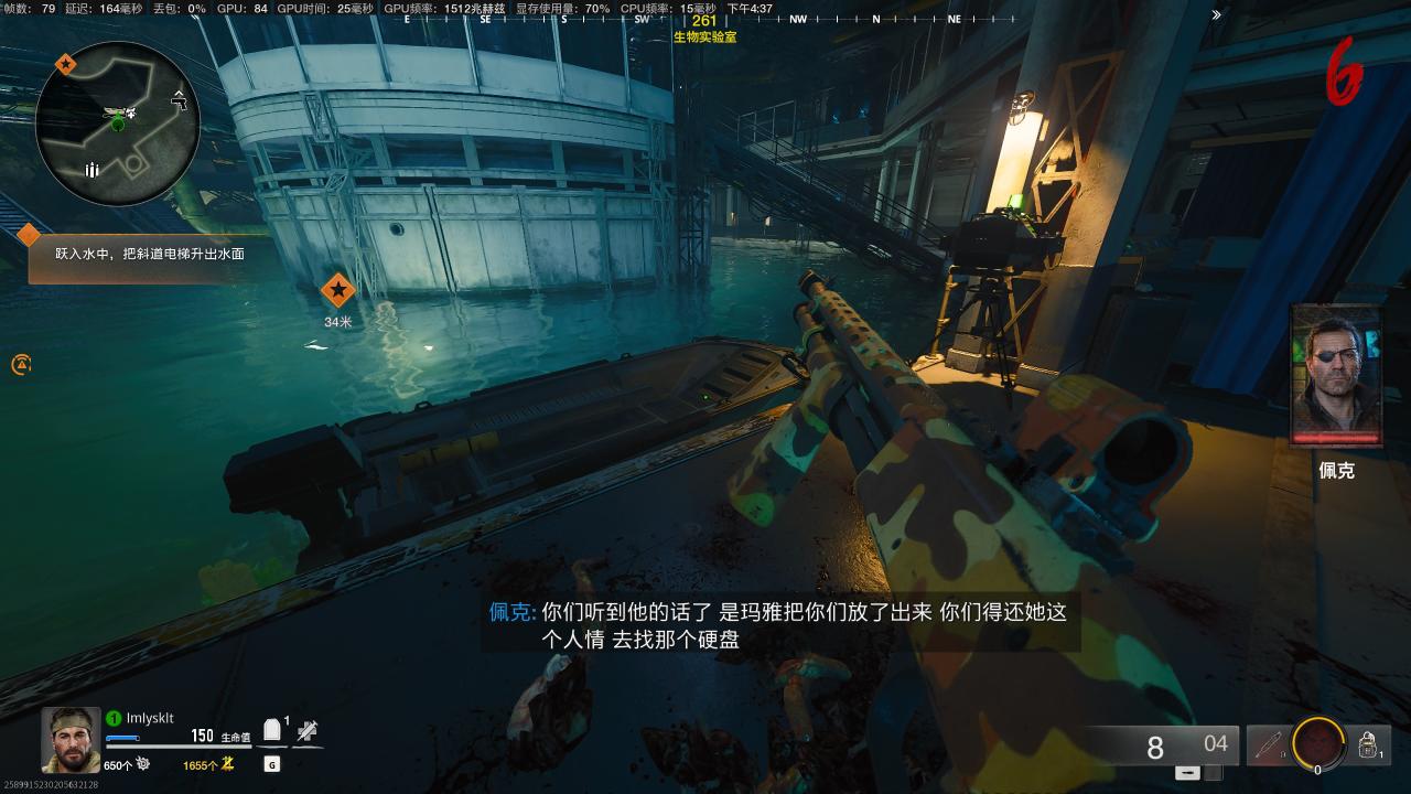 记得把水下的电梯升起来,这个东西能强化你的枪械,不然后面打不动僵尸。