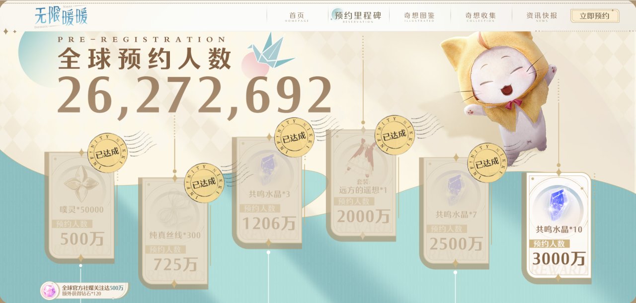 目前《無限暖暖》的全球預約人數已經超過了2600萬。