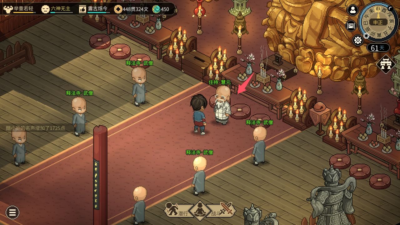 我這裏選擇了直接單挑大樑城釋法寺,與主持對話,選擇單挑即可。