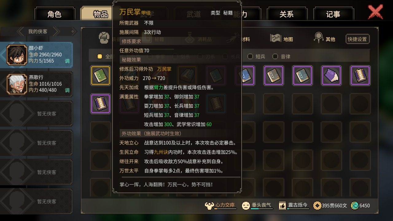在離開地牢之後,會觸發新的九流門背景故事劇情,劇情結束,師傅會給我們一本萬民掌祕籍。