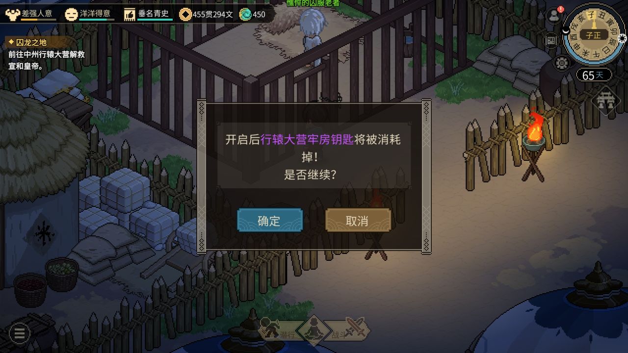 到達這個看門的百夫長面前之後,直接長按強制進入戰鬥,將附近的嘍囉全部解決了,就會獲得籠子的鑰匙。