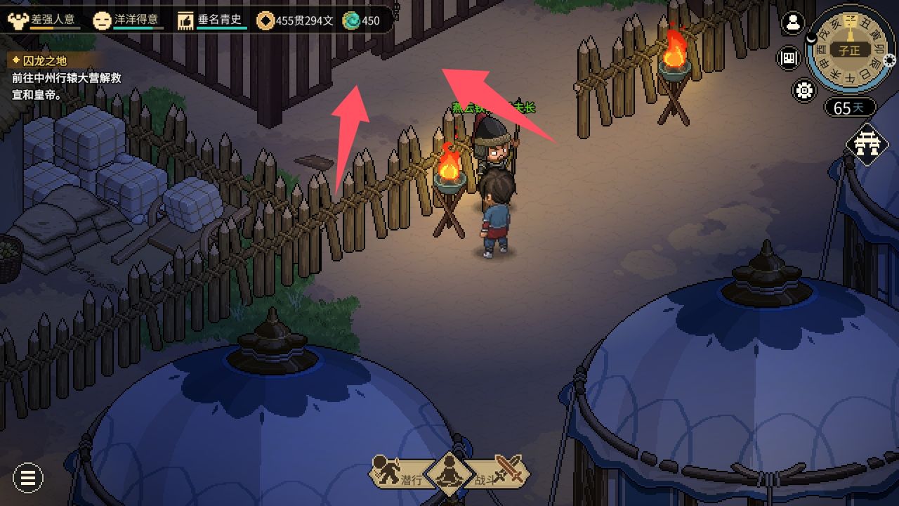 前往大梁城,行轅大營,在名聲等級足夠的情況下,自報姓名即可避免戰鬥直接進入。