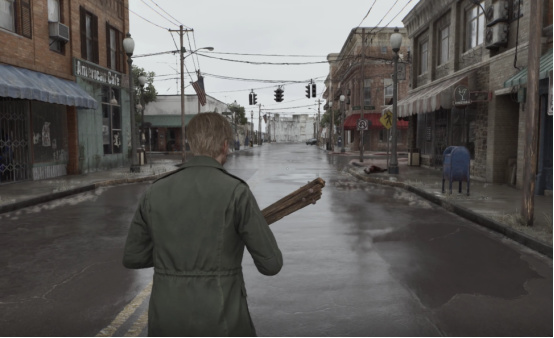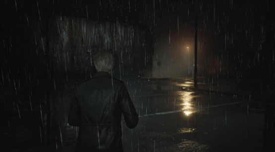 让我感到惊喜的是,即便有着招牌的“大雾”,但寂静岭的生态并不是一成不变的,随着游戏进程的推进,寂静岭的街道上也会迎来下雨、夜晚等动态天气变化,再配合上若隐若现的灯光和恰到好处的音效,增强代入感的同时,也再度拉高了寂静岭那死寂的氛围。
