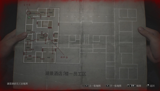 例如在医院里世界的解谜中,需要玩家打开一个装有三道锁的箱子,而钥匙与密码的获取方式全都以铁链的延申方向来作为引导,通常情况下你每跟着指引完成其中一条线索,都会发现一条全新的通往来时的近路,总是会让你不经意地感慨“原来这是通往这的啊”,完全不必再浪费时间去走回头路,大大提高了玩家的探索效率以及继续游玩的动力。