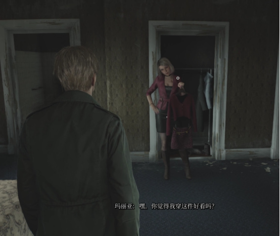 就比如跟随玩家时间较长的玛丽亚,在穿越汽车旅馆的时候,有这么一段是她从衣柜里拿出了一套很性感的衣服然后问我们她穿这件好不好看。其实这套衣服就是原版中玛丽亚穿的衣服,在重制版里搞这个桥段多少是有点对老玩家的嘲讽了。