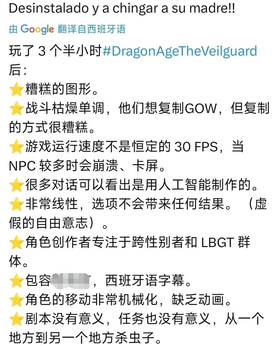 自己只是告诉生软官方,是非二元性别者,就从生软那里要到了《龙腾世纪4》的评测资格