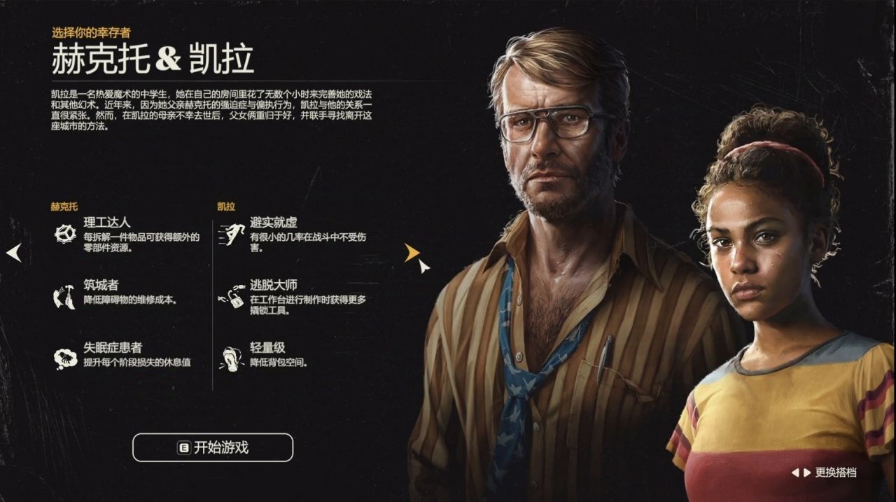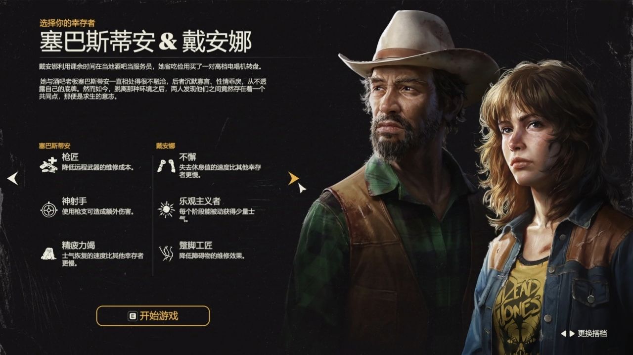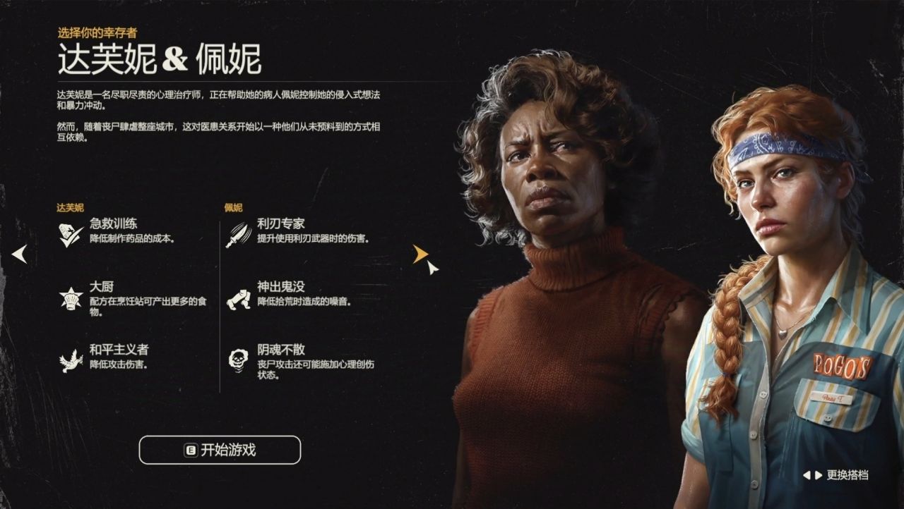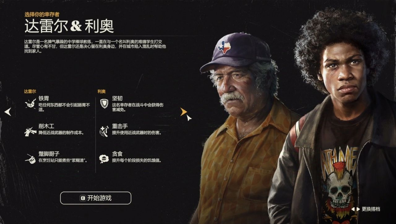 遊戲目前提供了4組倖存者搭檔,可供玩家選擇,他們擁有不同的特性和能力。