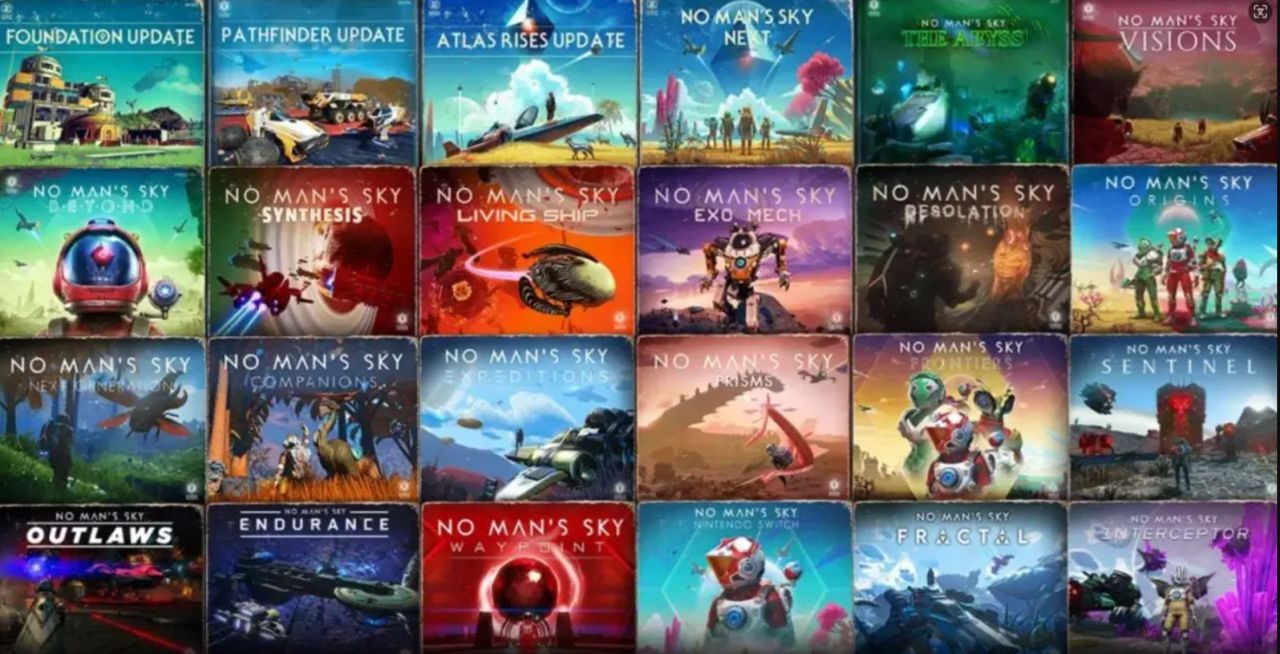 2016年11月,《无人深空》迎来了首个基石版本更新,由此拉开了一段超长持续运营的序幕。2017年的“探路者”和“阿特拉斯崛起”更新引入新的载具、任务系统、贸易经济、联合探索等功能。