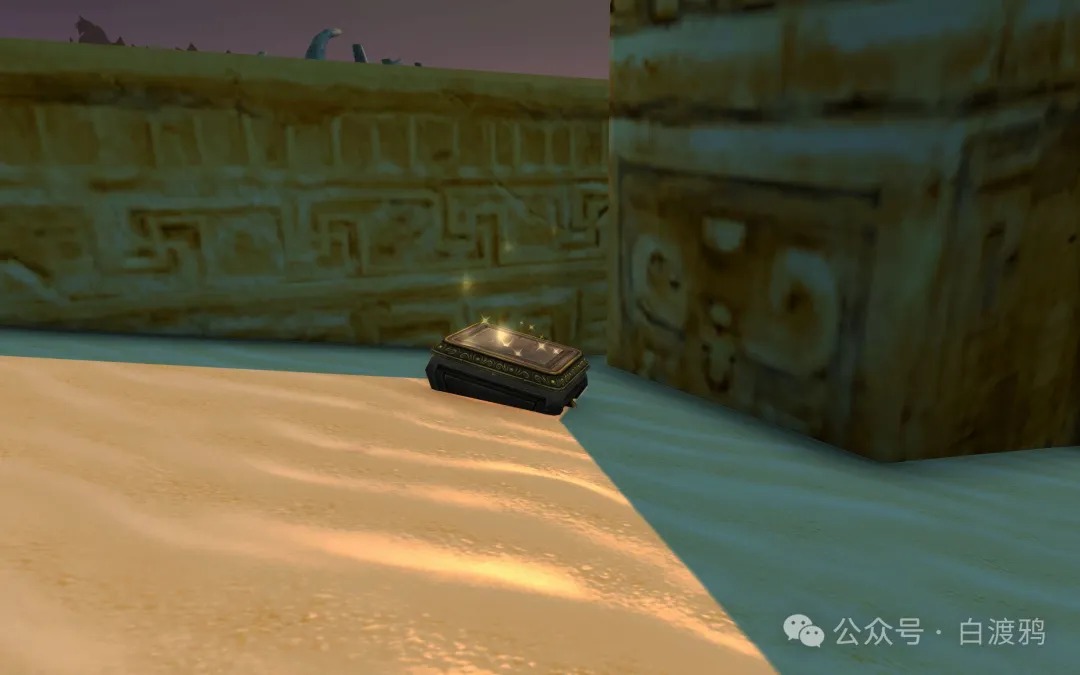 第三個【黃金聖盃】在【45.0 64.5 】東月遺址以西,半埋在地下的箱子: