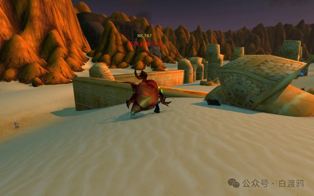 解下來,下一步任務會讓我們前往奧丹姆。任務地點位於【42.1,71.9 】南月遺址以東,在圖示位置與琥珀互動完成,如果沒有琥珀就是被別人點了,在原地等待刷新即可。