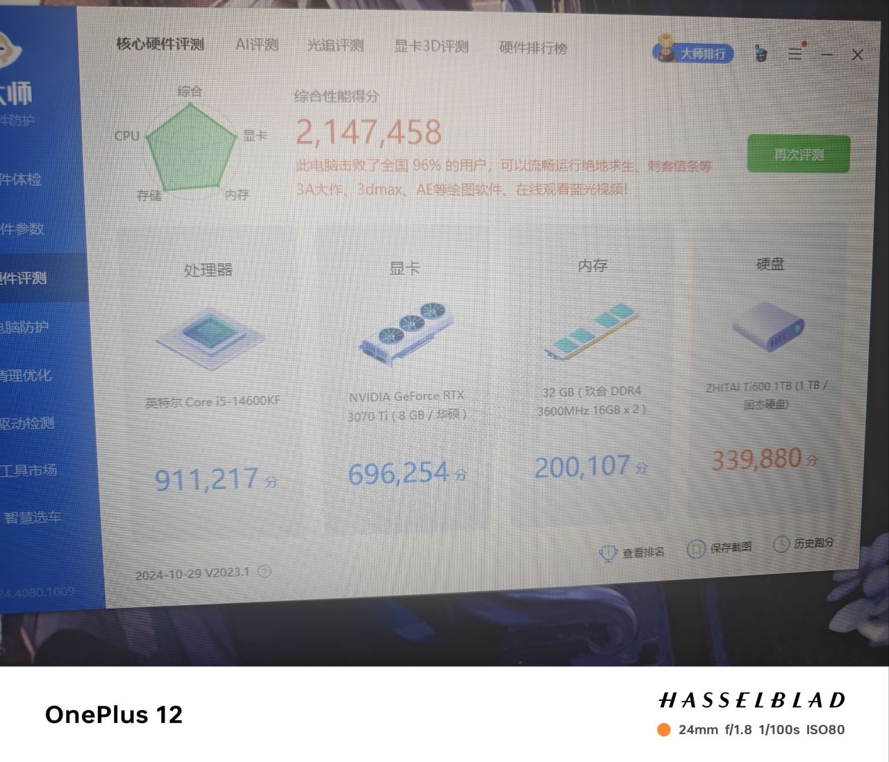 最終裝機後也是非常的酷炫啊,跑分也高達214萬(我的CPU跑分嚴重偏低,+6萬一點不過分,這麼算整機220萬跑分)