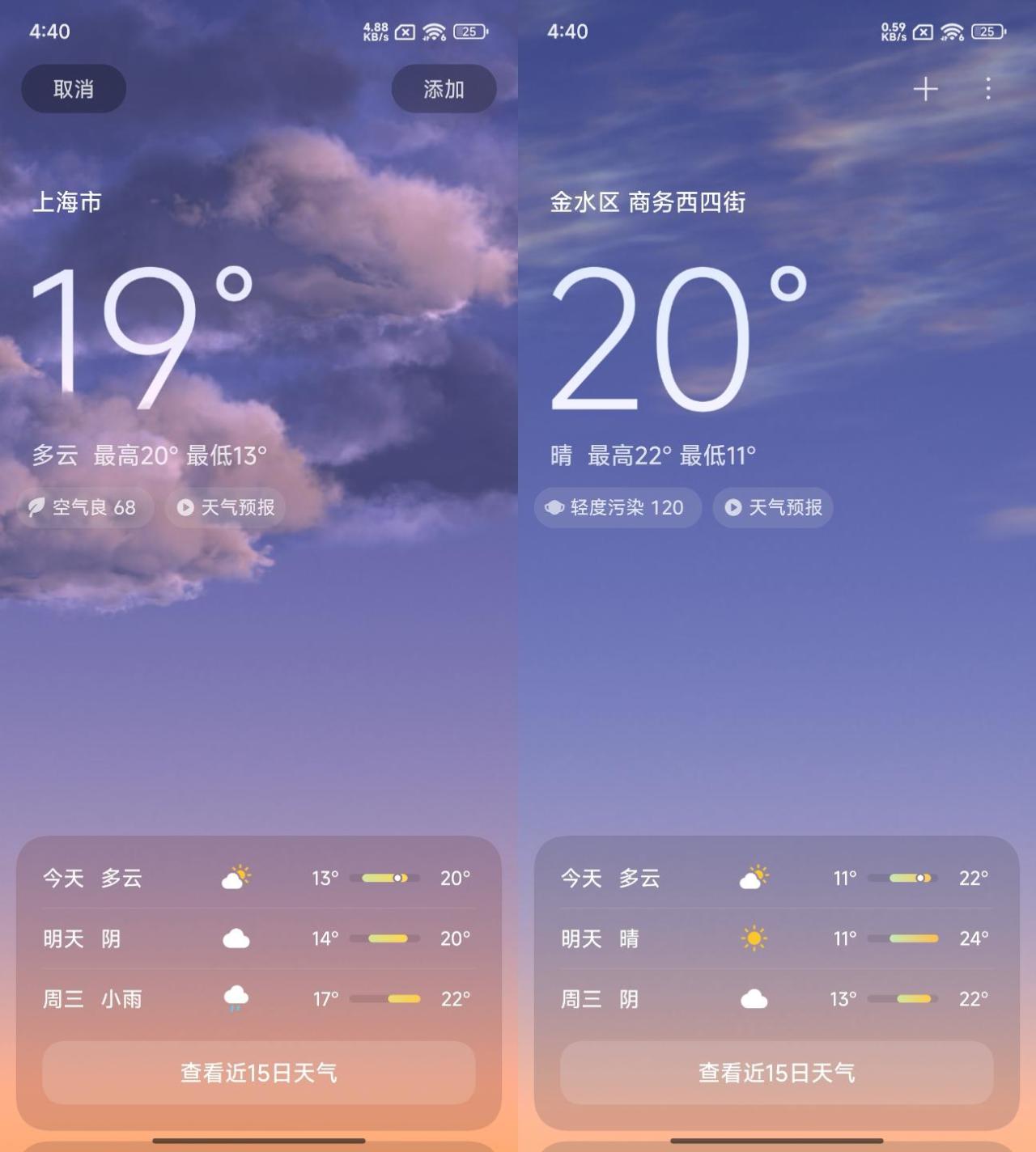现在,澎湃OS 2.0的天气APP也获得了升级,增加了实时气象引擎,系统会根据不同地区的天气情况,实时显示当前天气的动画。