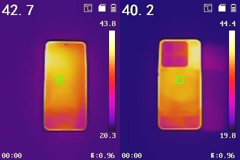 此时机身正面最高温度为38.9℃,背面最高温度为39℃。
