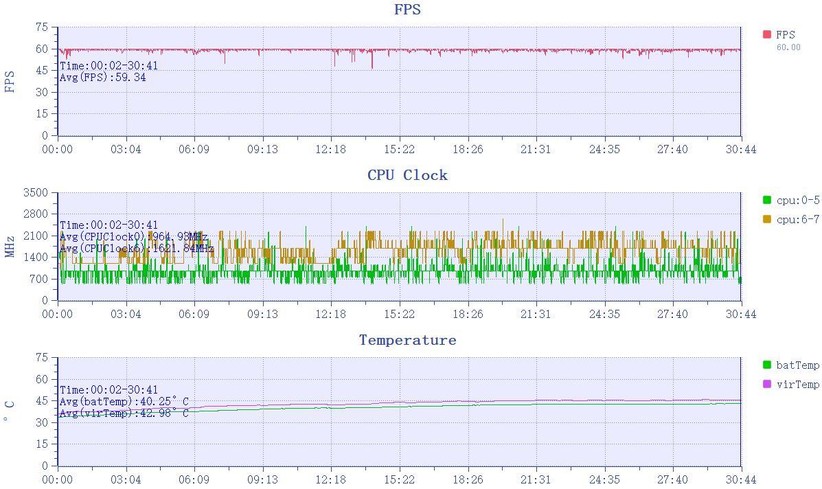 为了进一步压榨小米15 Pro的性能,我们还测试了《星穹铁道》,黄金的时刻跑图半小时,画面帧数依旧稳定,平均帧数为59.34 FPS。