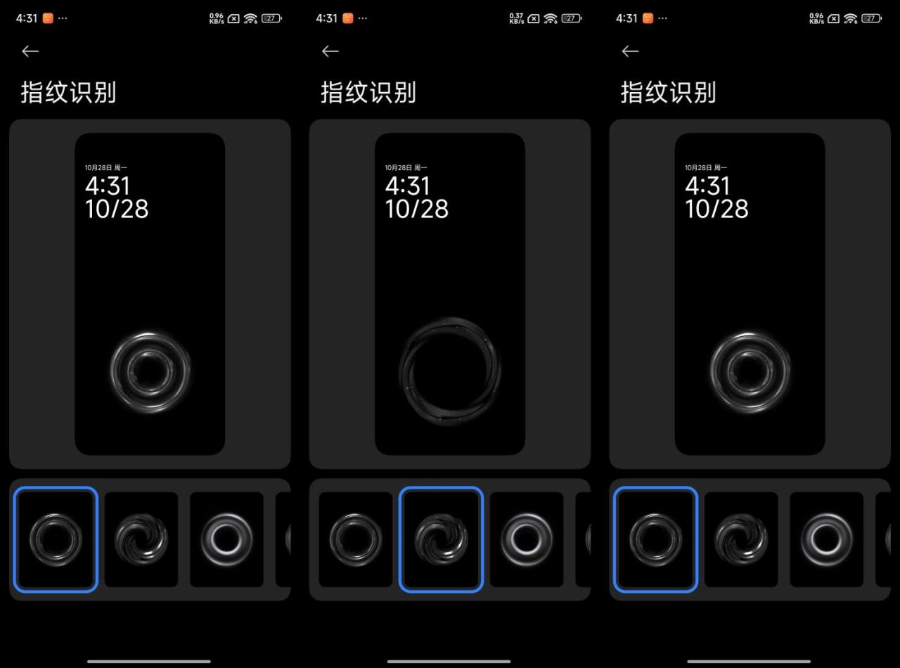 澎湃OS 2.0对系统动效进行了全面升级。首先,重新设计的指纹解锁动效,拥有6种不同的透明水波纹效果。