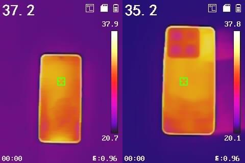 正因如此,机身温度才会控制得很好,正面最高温度37.9℃,背面最高温度为37.8℃。