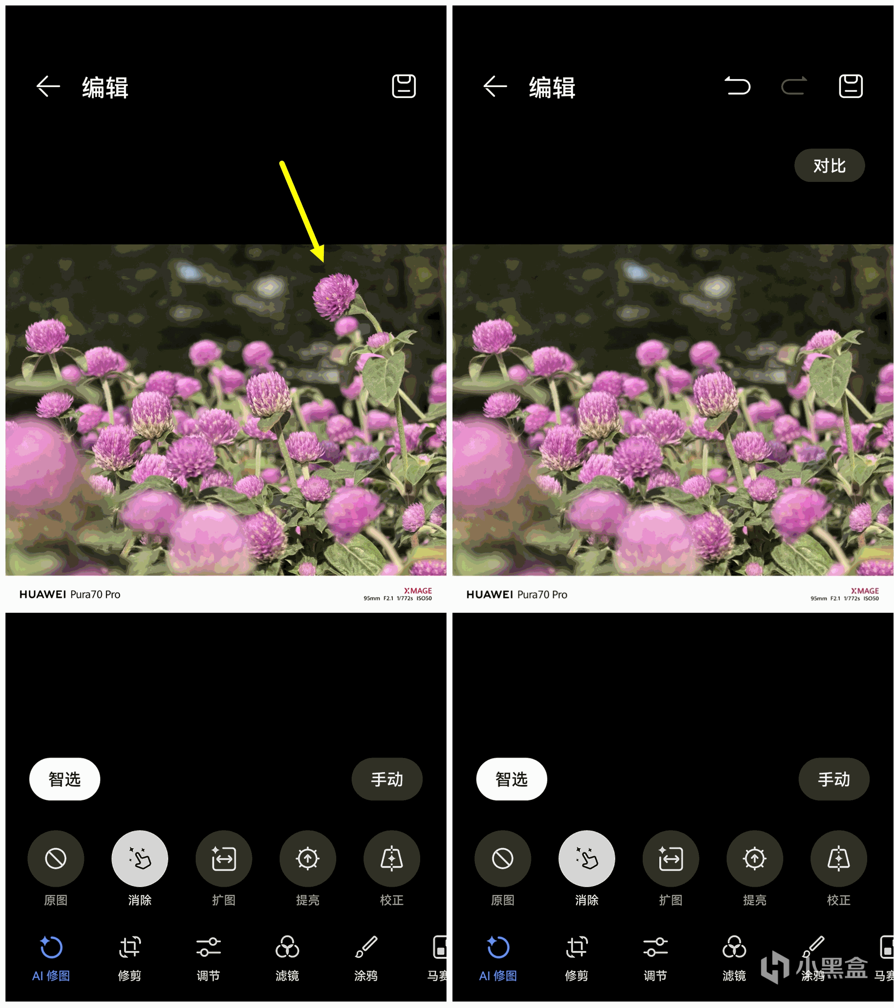后期处理上,华为Pura 70 Pro还足够的AI,能实现很多功能,比如说“消除”、“提亮”、“扩图”……前期没拍好的照片,经过AI处理后,一样是美美的,真的是朋友圈神器!
