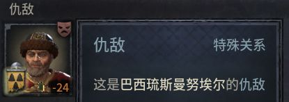 來到遊戲,我們可以發現他的關係一欄裏和曼努埃爾互爲仇敵