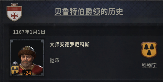 安德羅尼科斯在耶路撒冷流浪期間甚至成爲了貝魯特的領主,我們可以在頭銜歷史一欄裏面看到