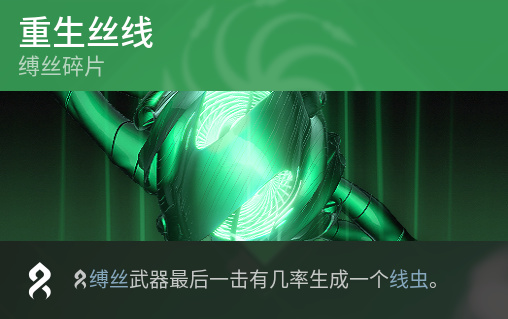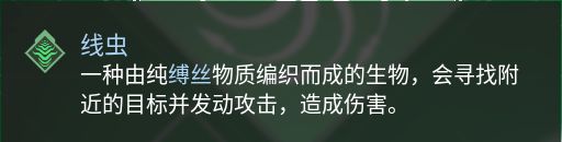 重生丝线:缚丝武器最后一击有几率生成线虫,配合缚丝武器产线虫效率不低,产出的是即时作战的线虫。