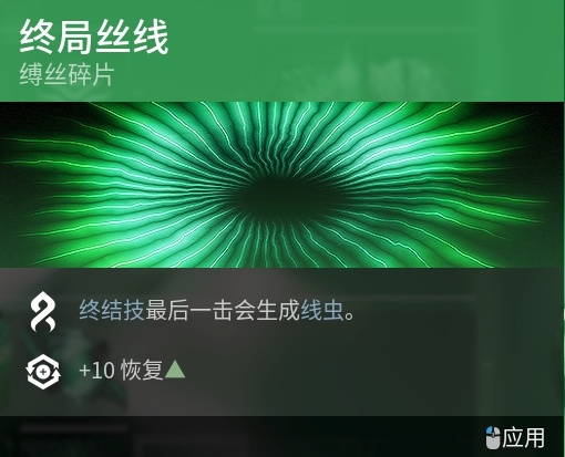 终局丝线:终结技产出两个战斗线虫,提供10恢复。