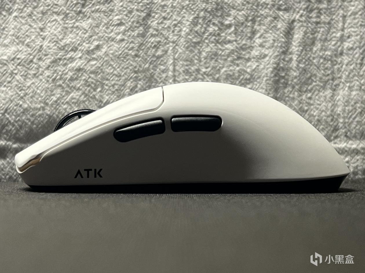 而當抓握使用時,由於鼠標的這個收尾處理,尾部也能對手掌起到一個相當好的承接,並且由於鼠標左側除了側鍵之外,還預留出了足夠大的空間,也不用擔心抓握時會因爲高強度的競技而導致大拇指誤觸側鍵。