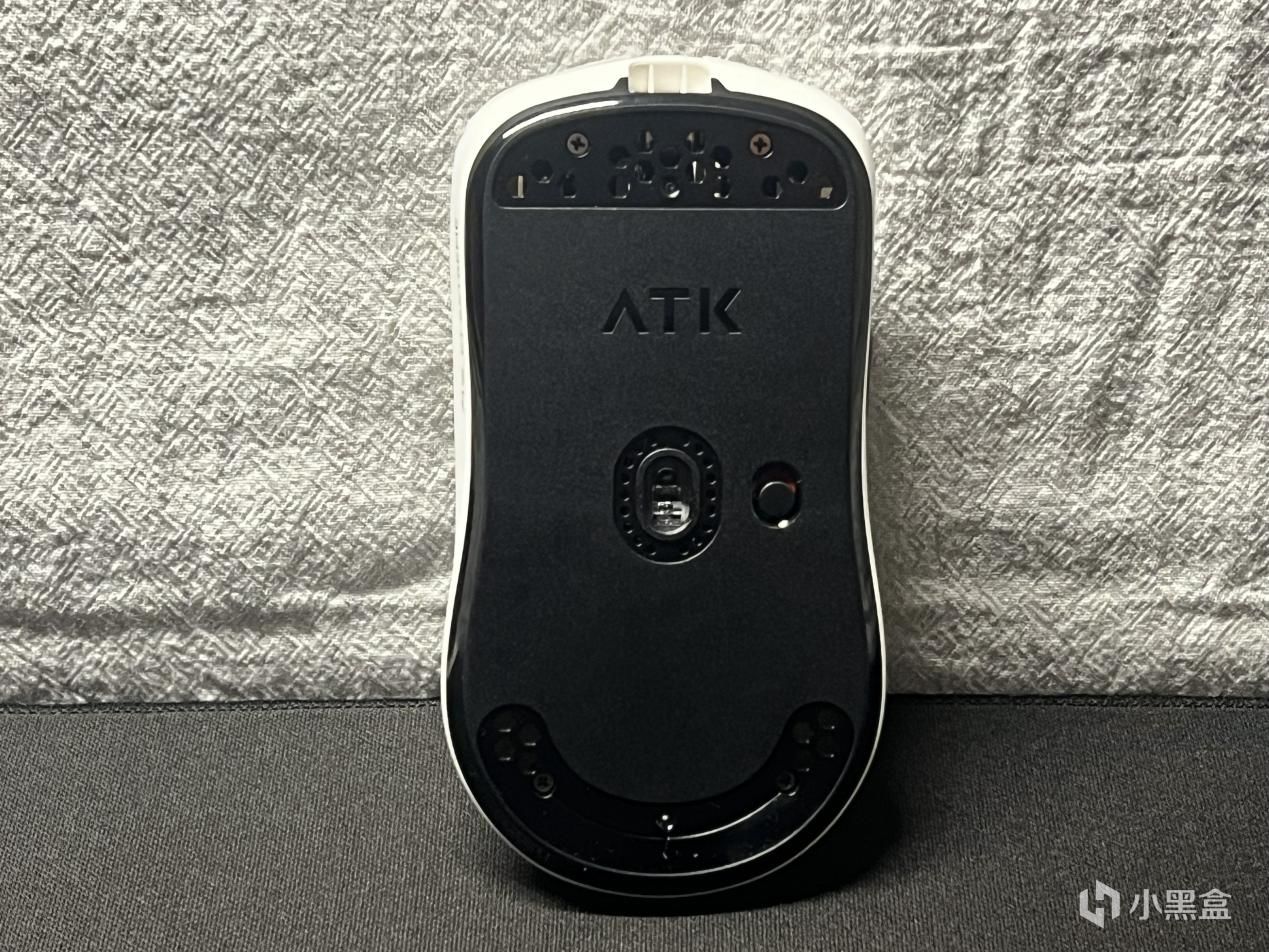 同時大家可以看到,雖然是號稱目前最輕無孔遊戲鼠標,但實際上ATK烈空F1探索版是在腳貼的位置處打了孔的(但其實無所謂,貼上腳貼就看不到了,只要表面看不到孔,就是無孔!)