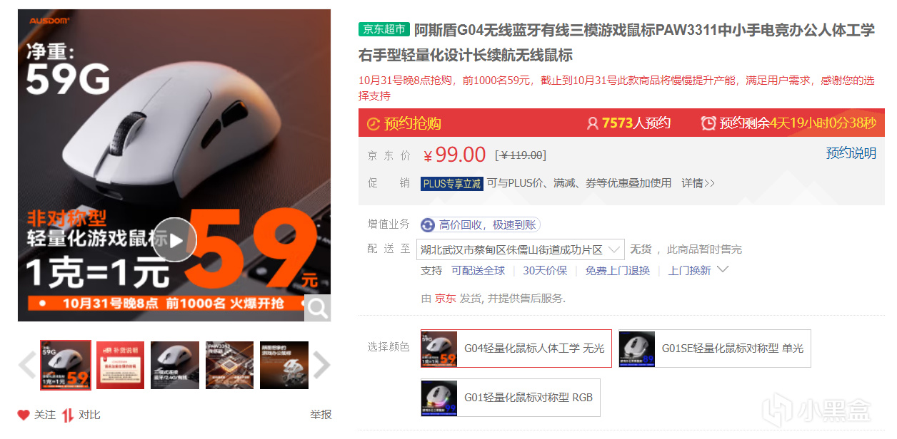 而且,59元并不是什么垃圾货色,而是可以得到2000W次的华诺白点微动+PAW3104传感器+BK主控