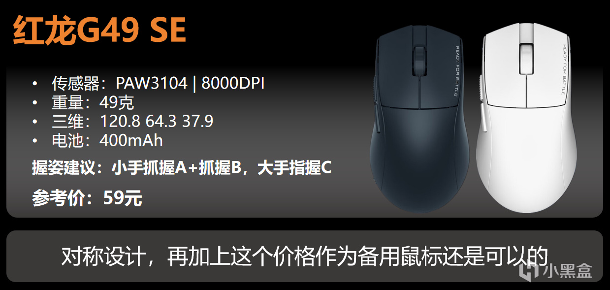 红龙G49为对称模具,比较推荐短TTK游戏,比如瓦罗兰特,更好掌控。