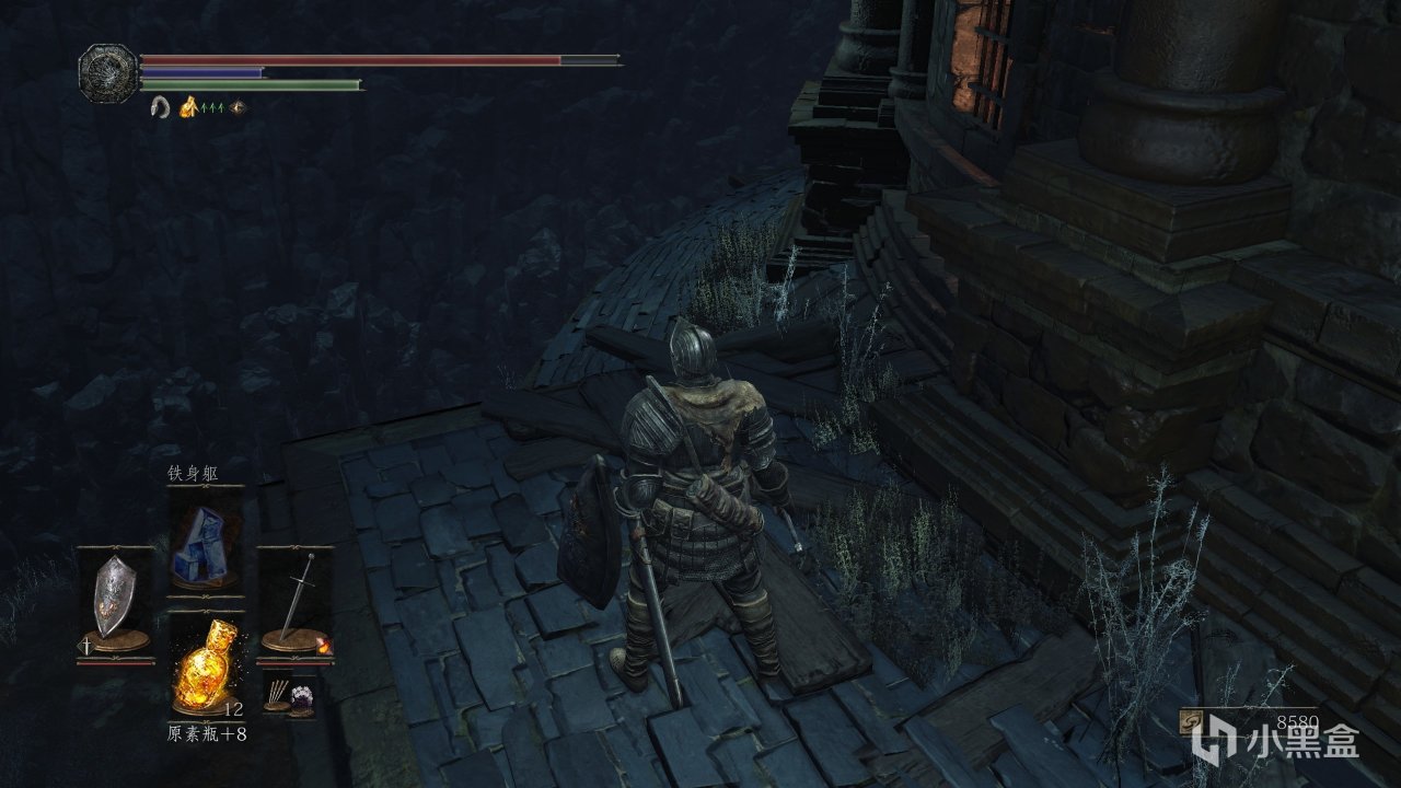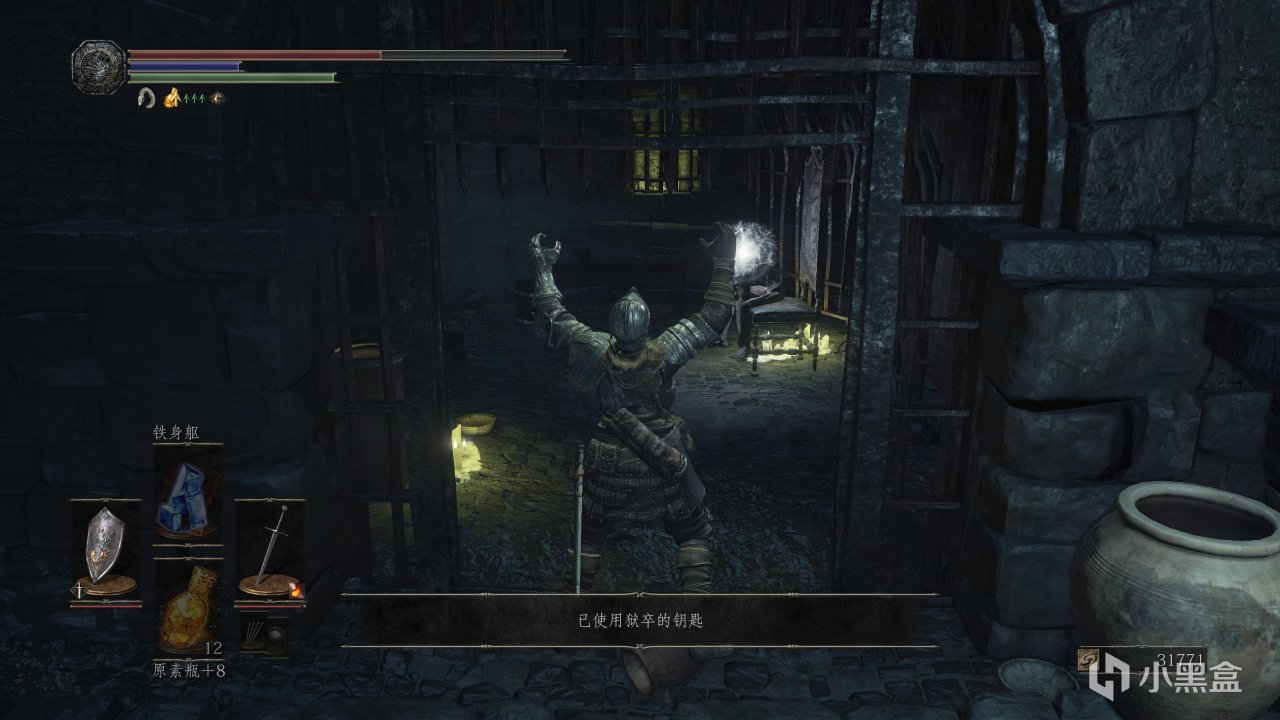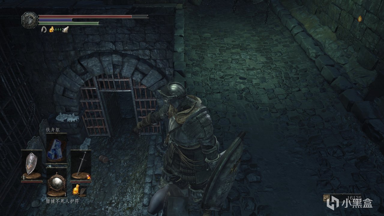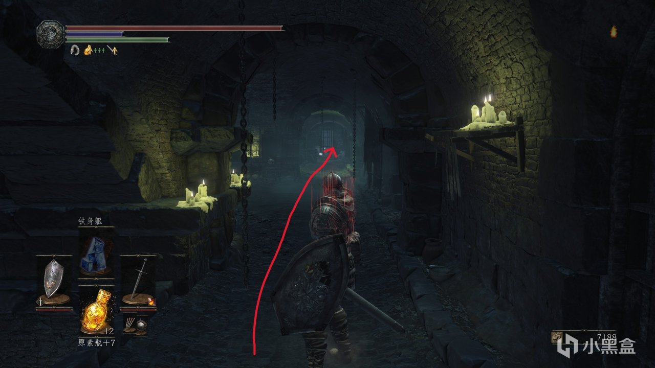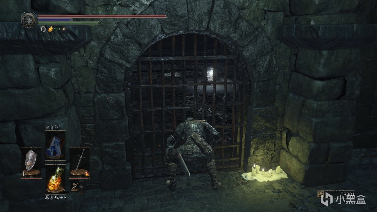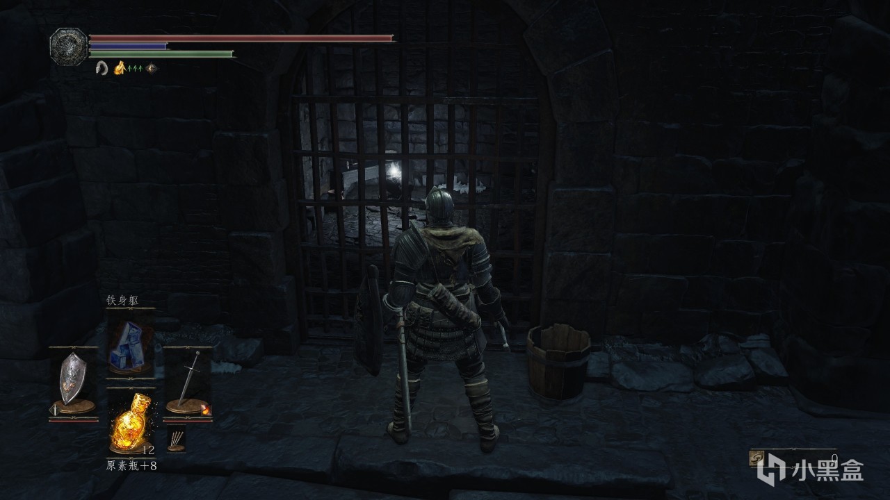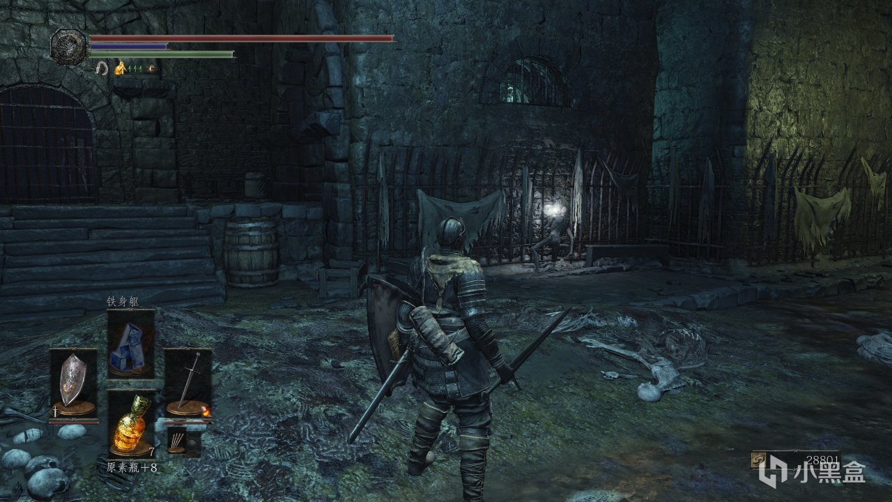 走到頭撿鑰匙(宮崎英高在這裏的設計就是讓你來回在地下監牢跑,屬於是沒活了,做不了大地圖了,讓你重複體驗,正常不從平臺跳木板只能從這個走廊跳到巨人腳下,然後又是發現洋蔥,找洋蔥)