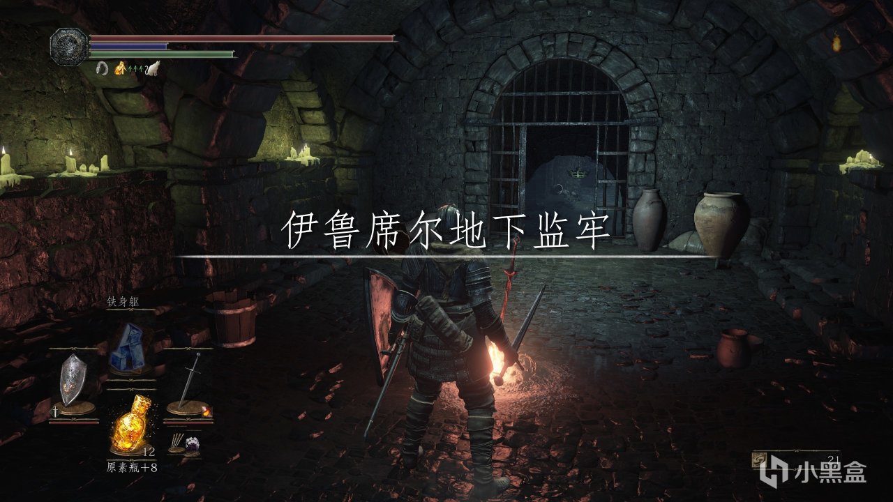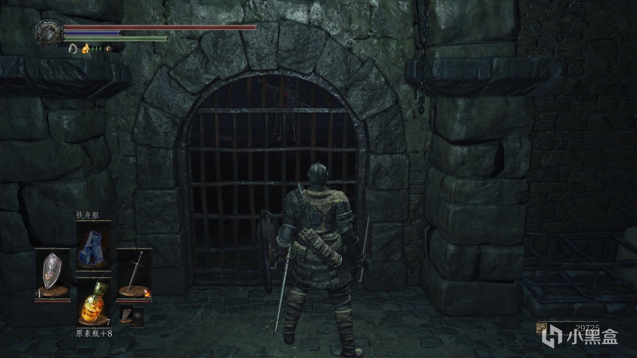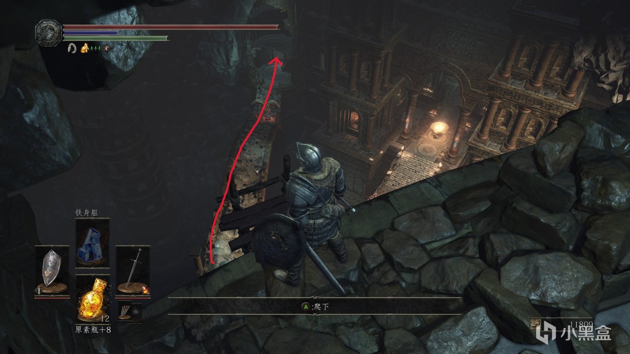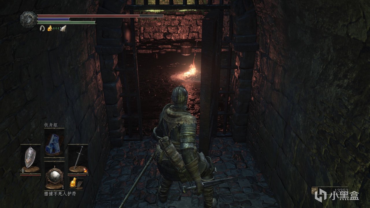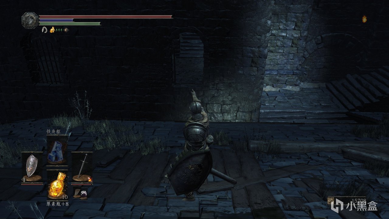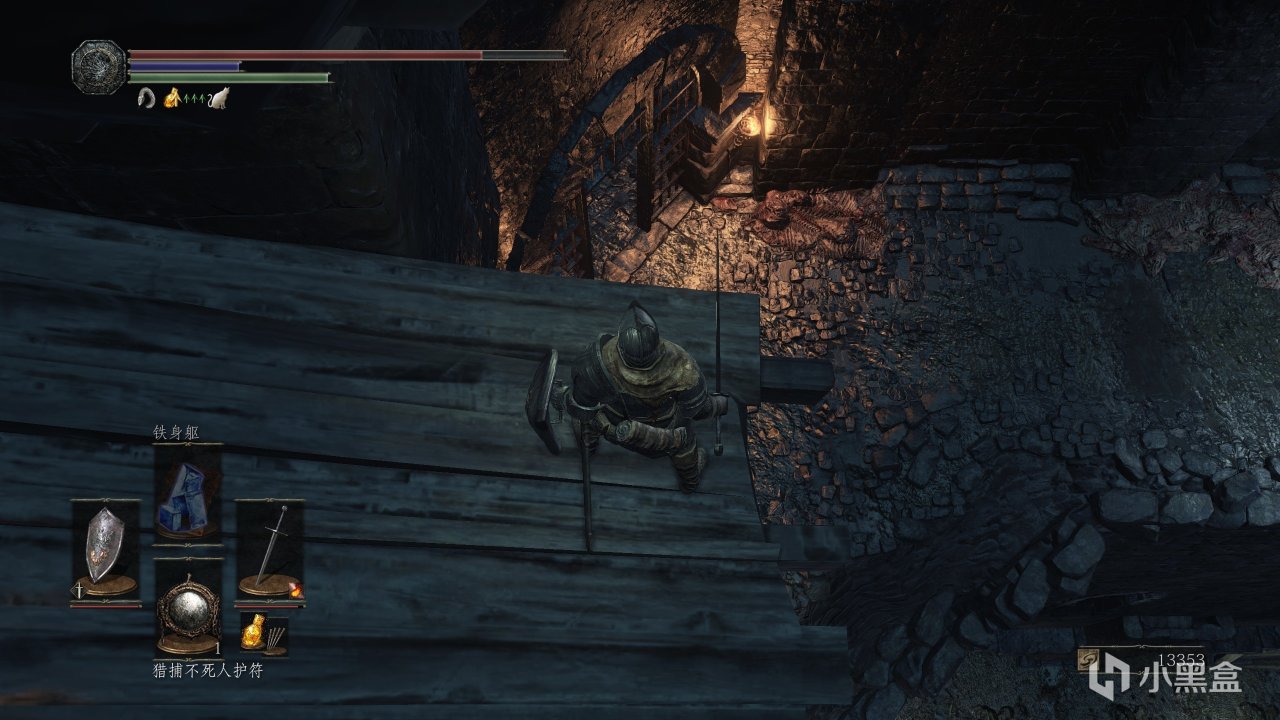 走到頭撿鑰匙(宮崎英高在這裏的設計就是讓你來回在地下監牢跑,屬於是沒活了,做不了大地圖了,讓你重複體驗,正常不從平臺跳木板只能從這個走廊跳到巨人腳下,然後又是發現洋蔥,找洋蔥)