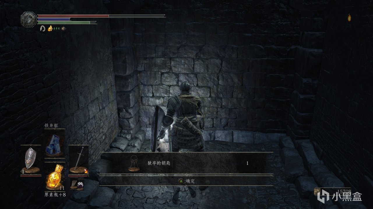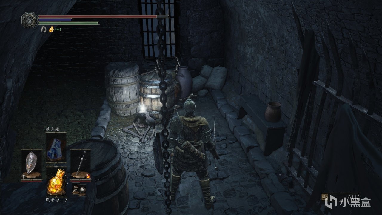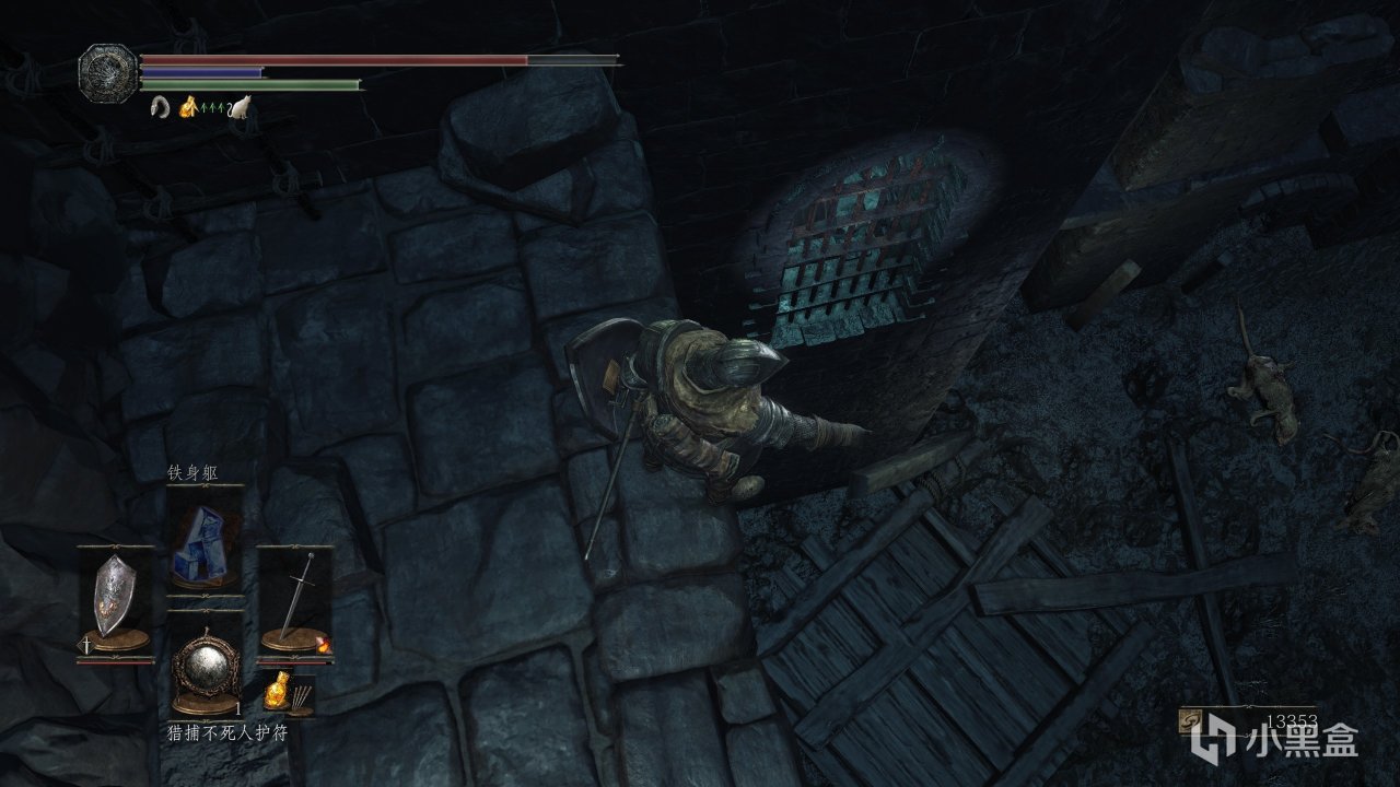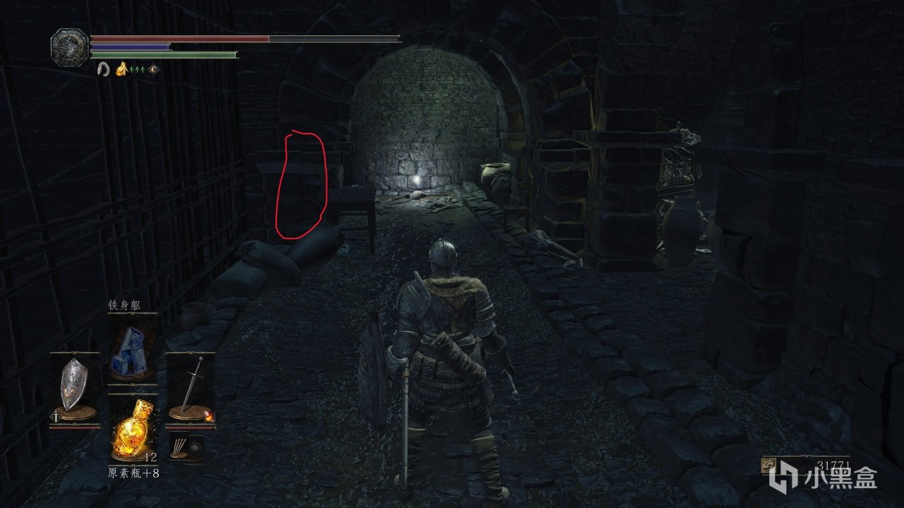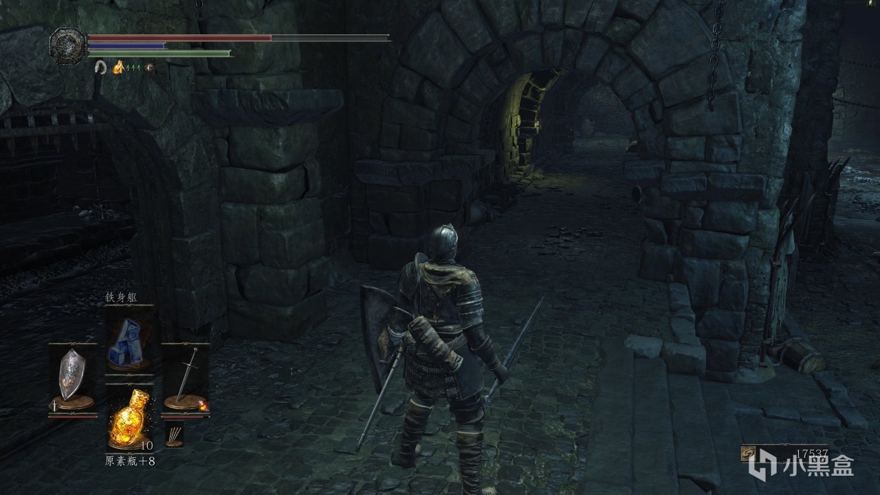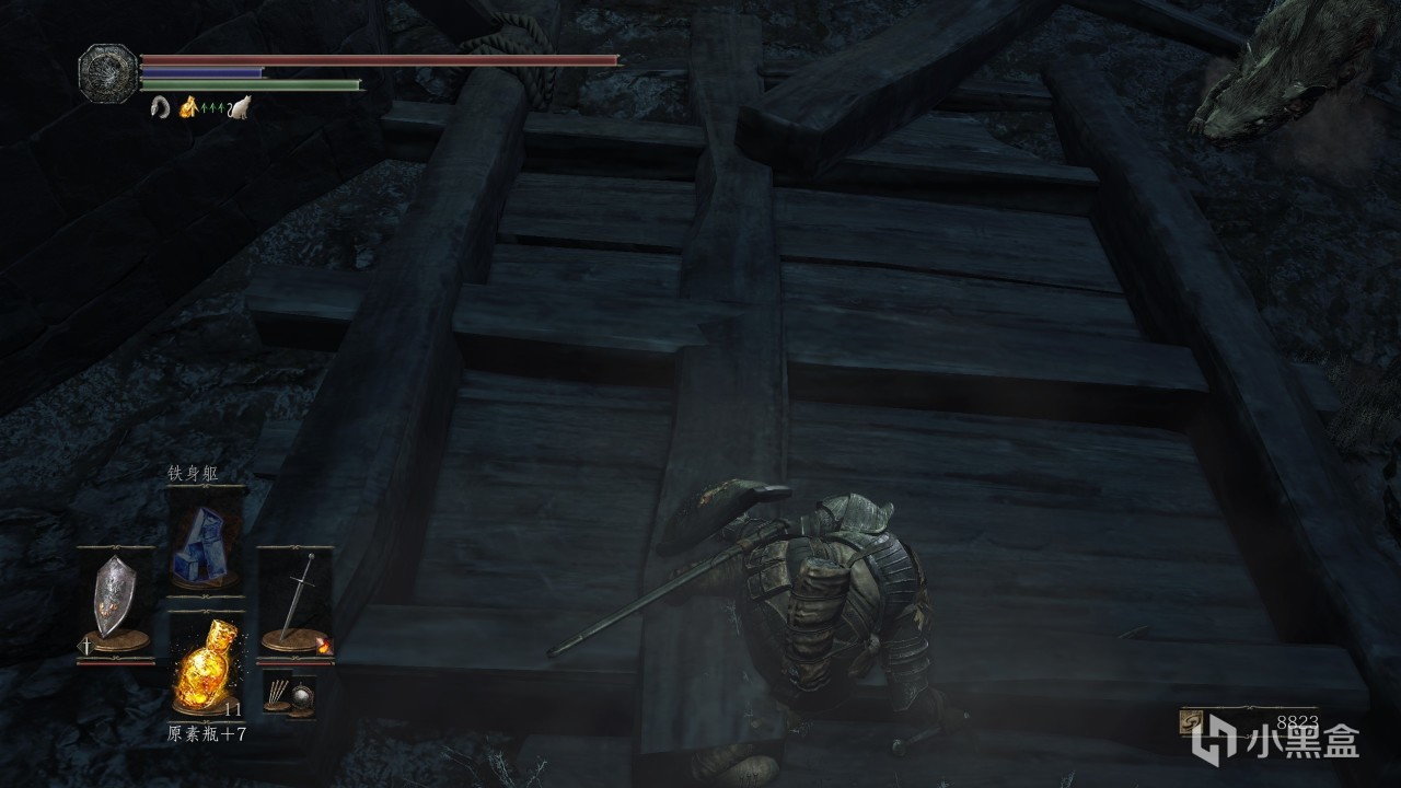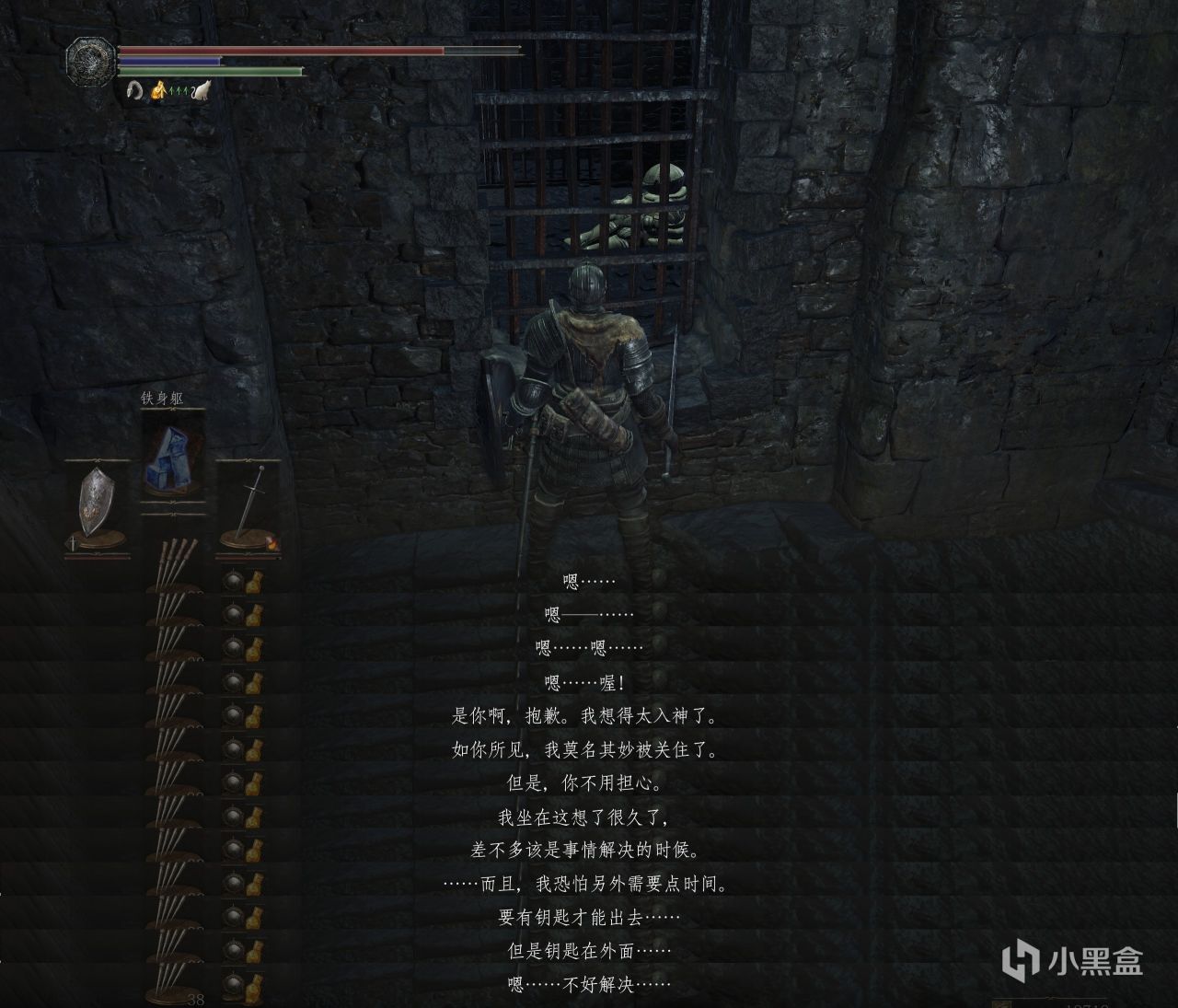 走到頭撿鑰匙(宮崎英高在這裏的設計就是讓你來回在地下監牢跑,屬於是沒活了,做不了大地圖了,讓你重複體驗,正常不從平臺跳木板只能從這個走廊跳到巨人腳下,然後又是發現洋蔥,找洋蔥)