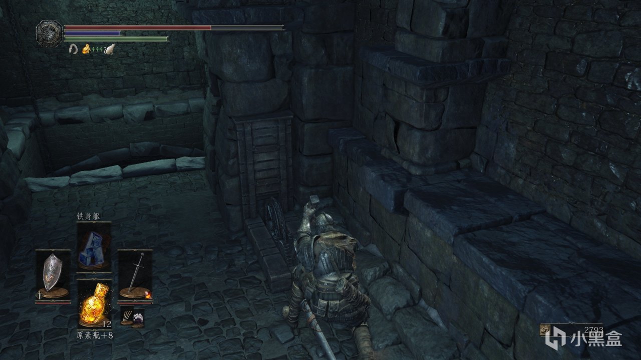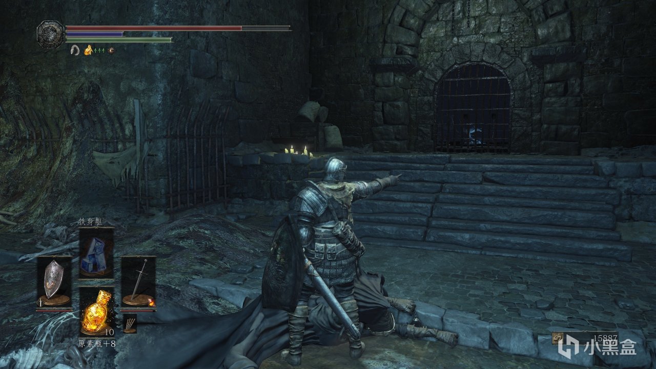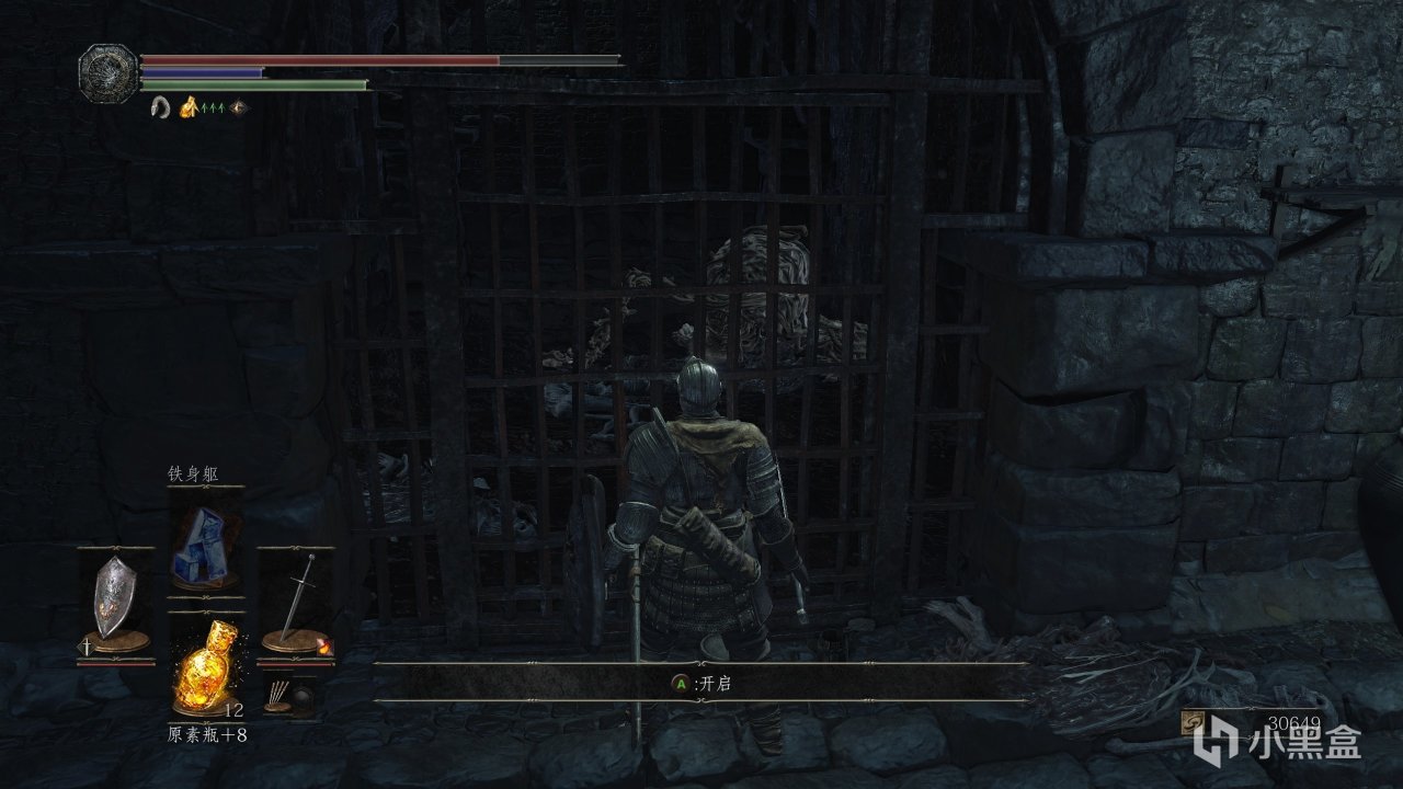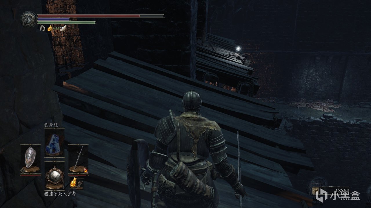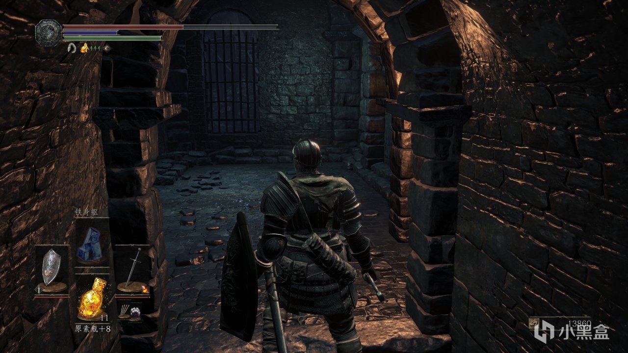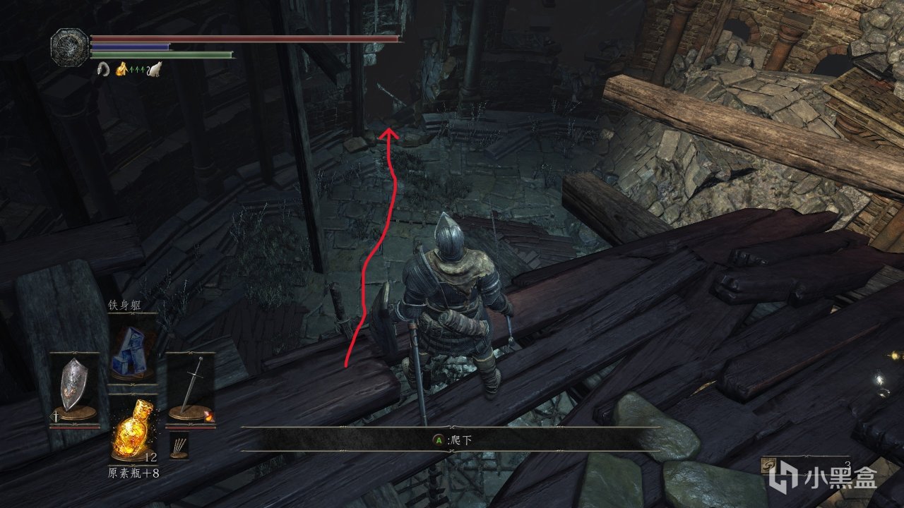 走到頭撿鑰匙(宮崎英高在這裏的設計就是讓你來回在地下監牢跑,屬於是沒活了,做不了大地圖了,讓你重複體驗,正常不從平臺跳木板只能從這個走廊跳到巨人腳下,然後又是發現洋蔥,找洋蔥)