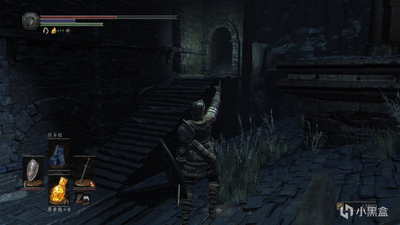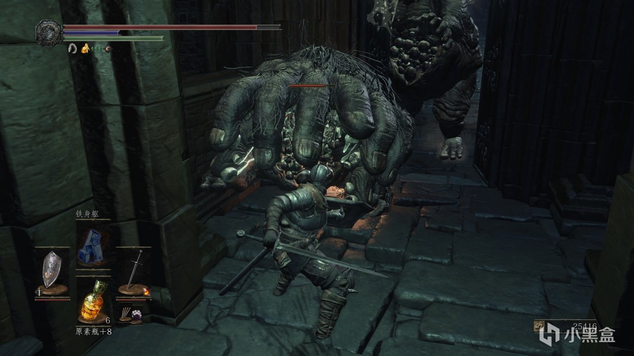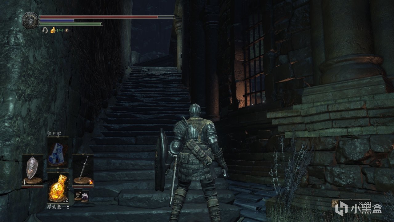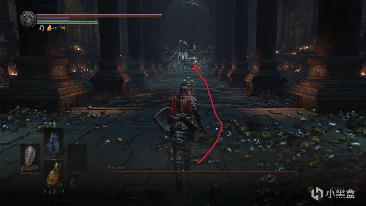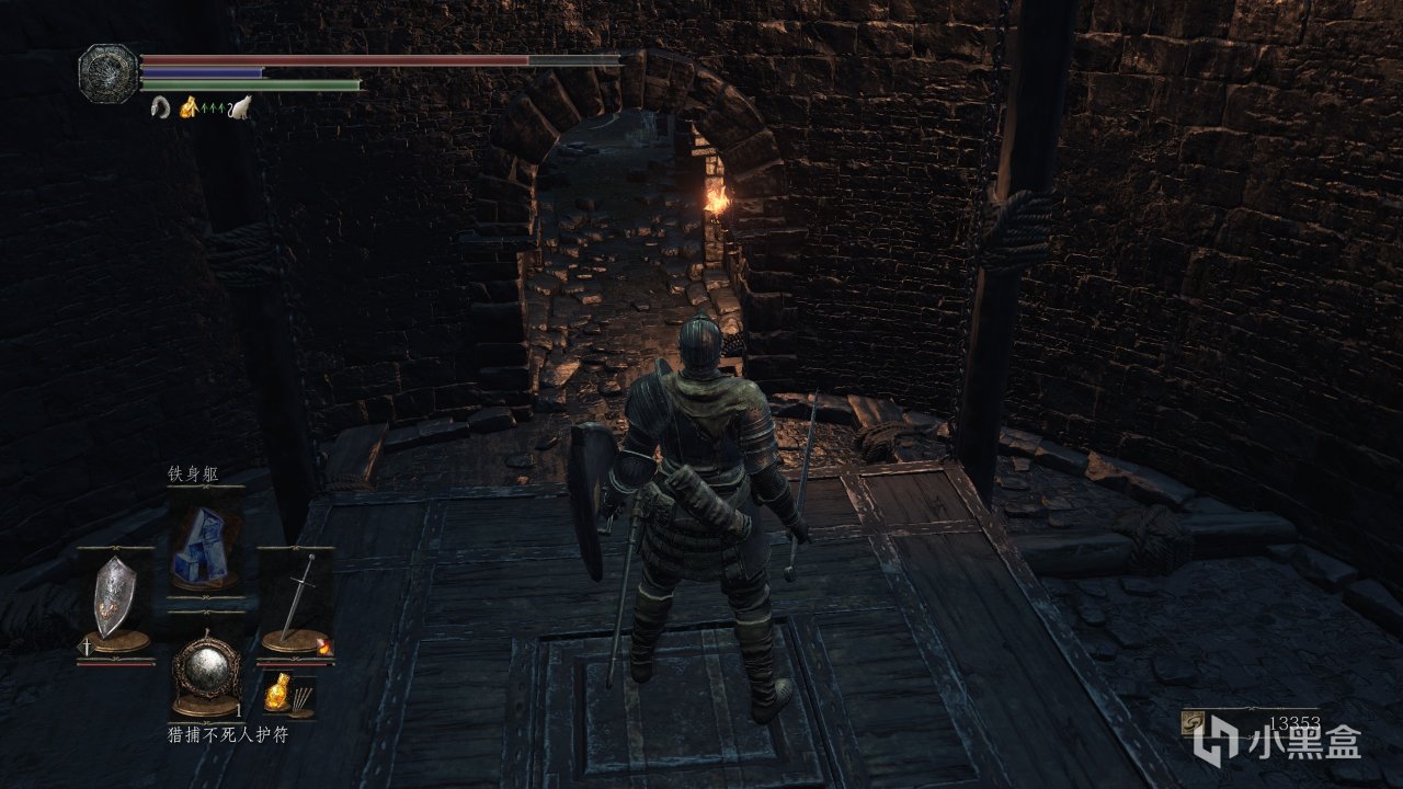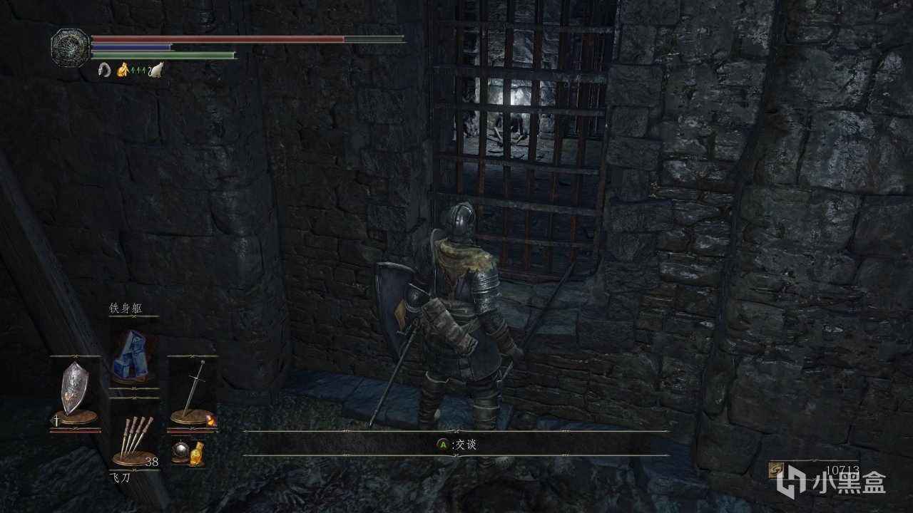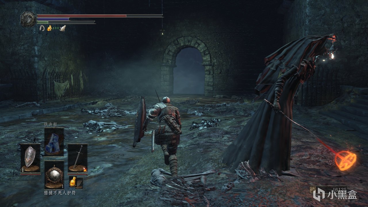 走到頭撿鑰匙(宮崎英高在這裏的設計就是讓你來回在地下監牢跑,屬於是沒活了,做不了大地圖了,讓你重複體驗,正常不從平臺跳木板只能從這個走廊跳到巨人腳下,然後又是發現洋蔥,找洋蔥)
