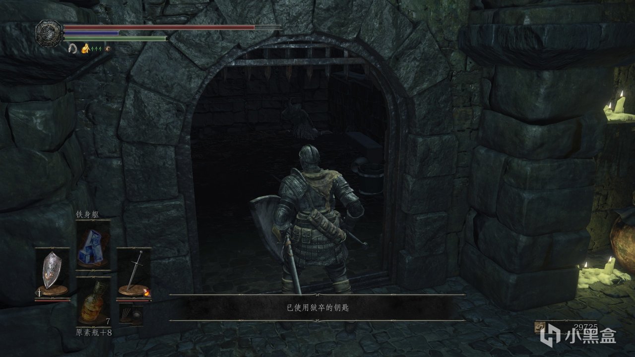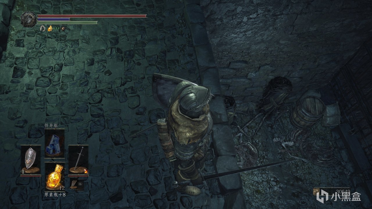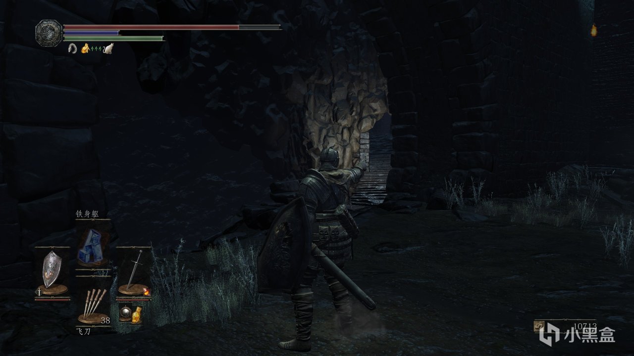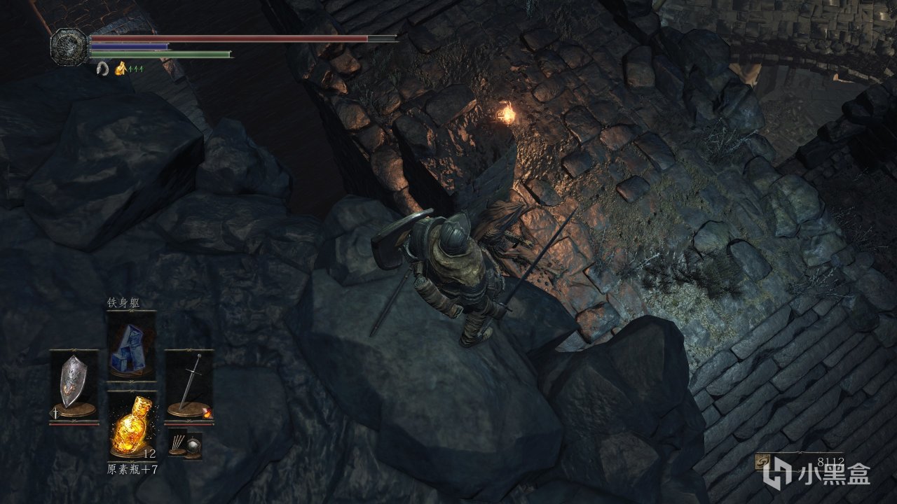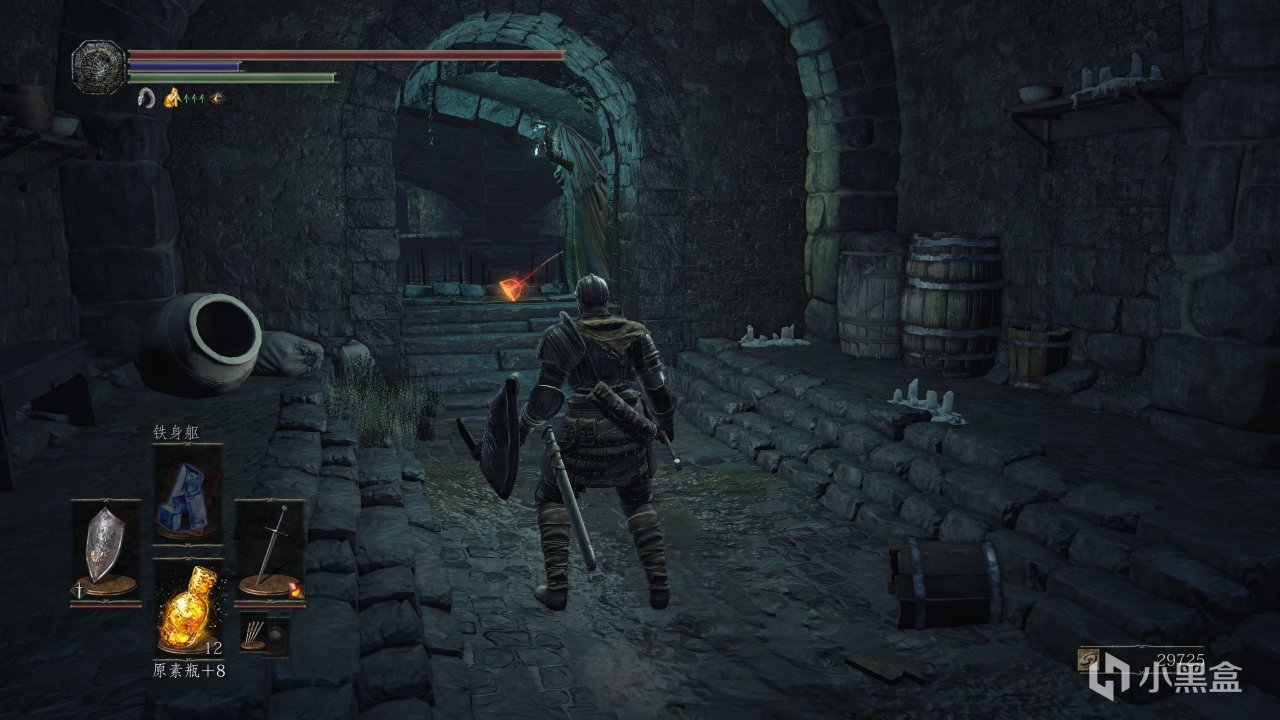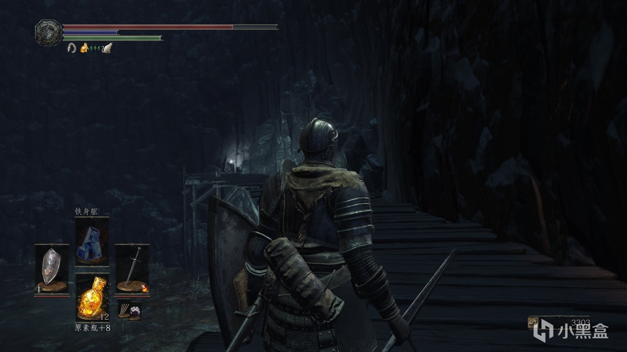 走到頭撿鑰匙(宮崎英高在這裏的設計就是讓你來回在地下監牢跑,屬於是沒活了,做不了大地圖了,讓你重複體驗,正常不從平臺跳木板只能從這個走廊跳到巨人腳下,然後又是發現洋蔥,找洋蔥)