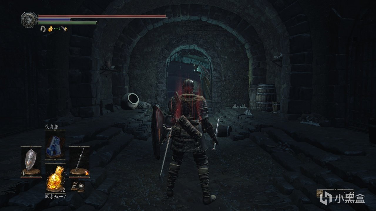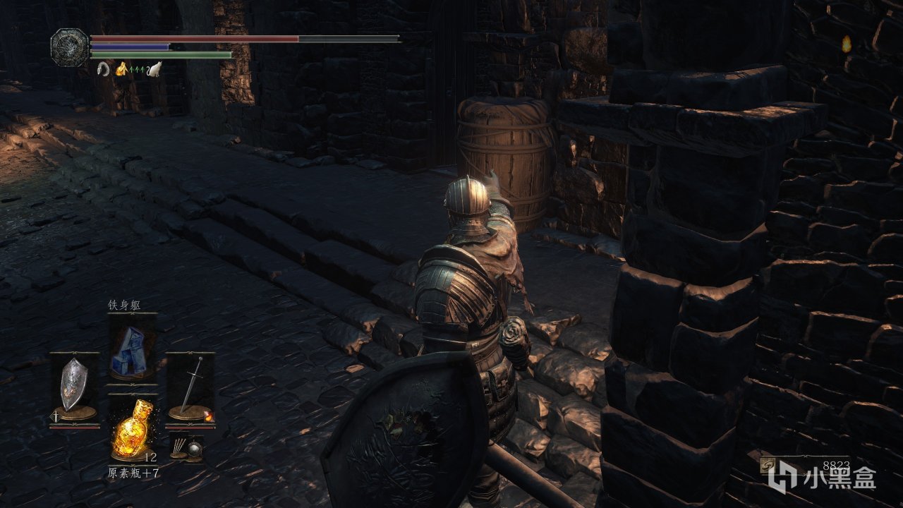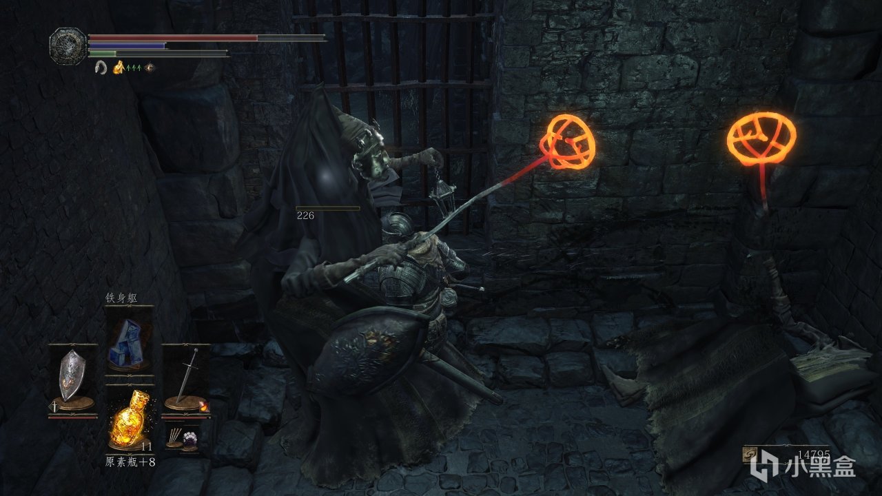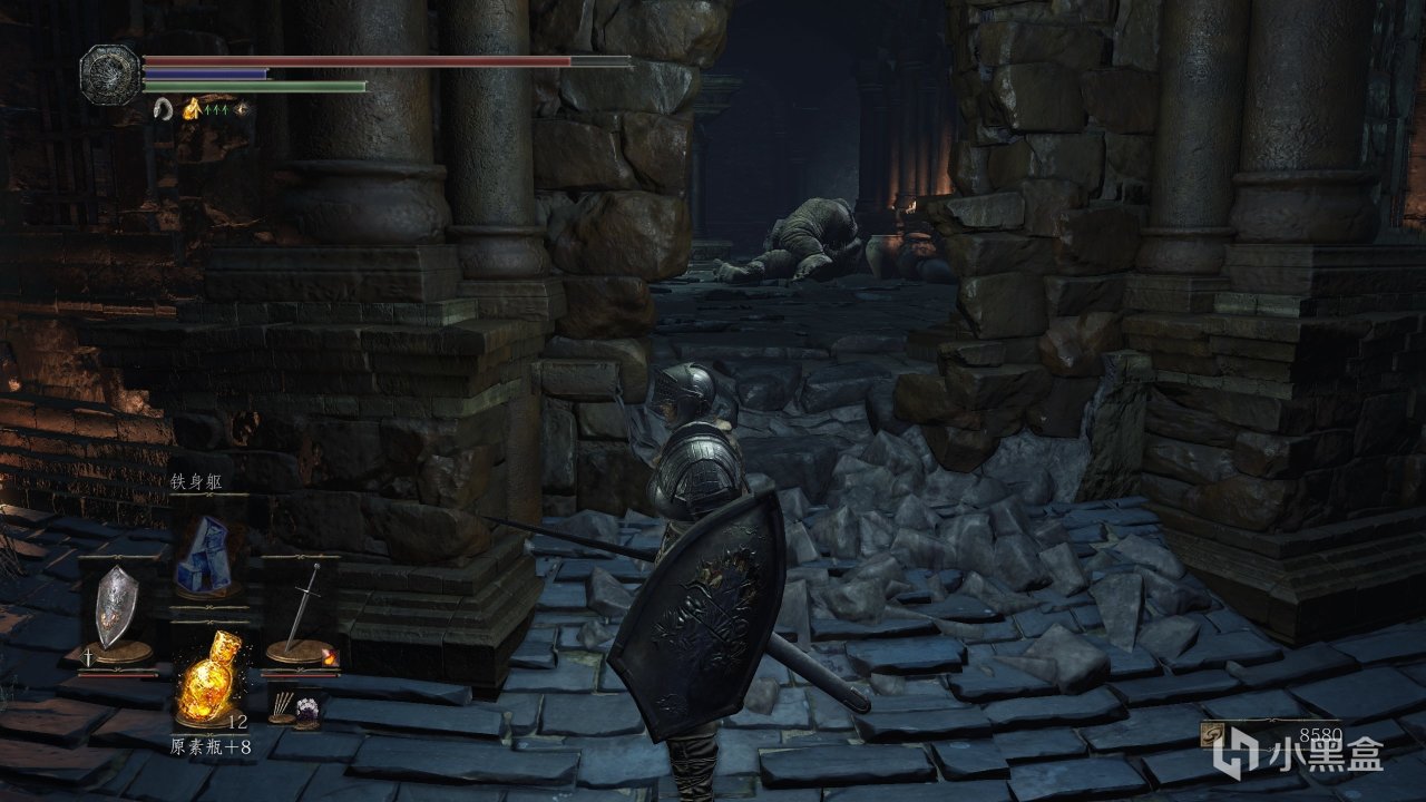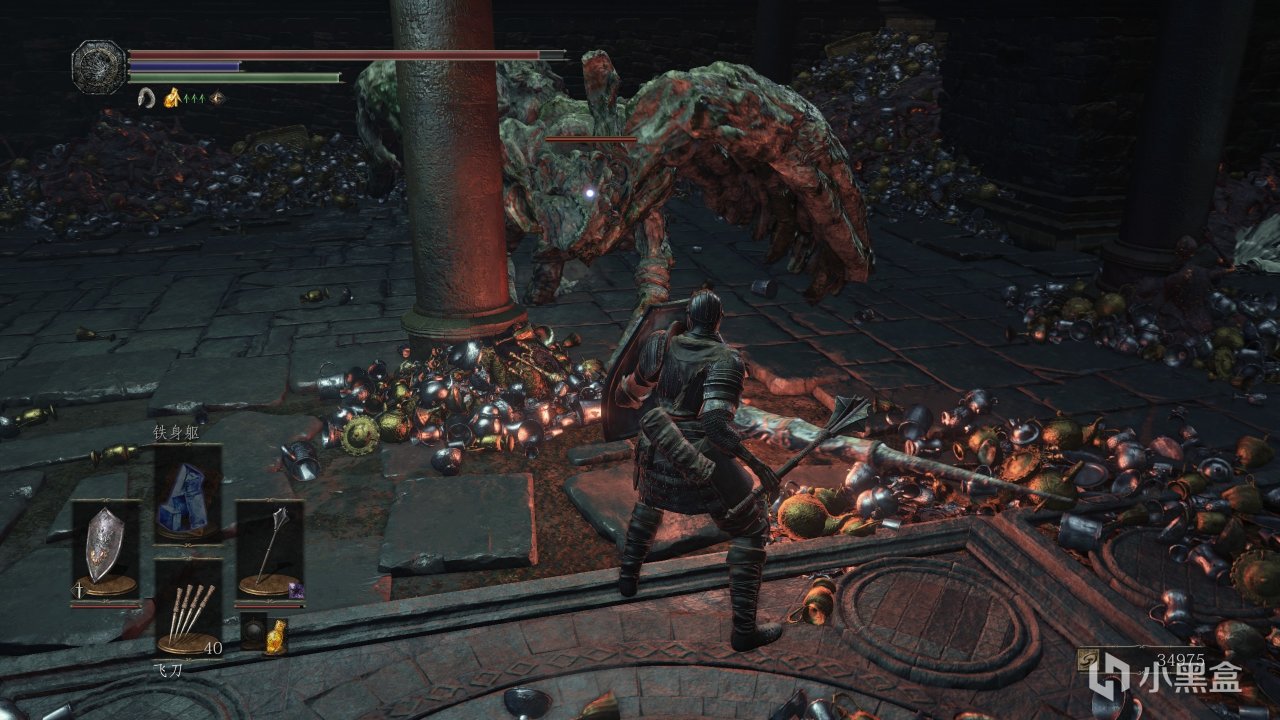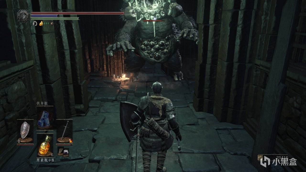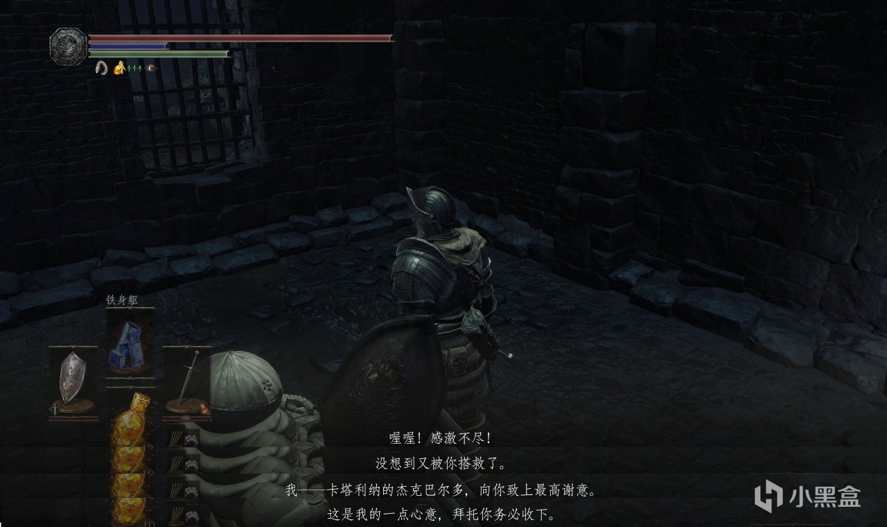 走到頭撿鑰匙(宮崎英高在這裏的設計就是讓你來回在地下監牢跑,屬於是沒活了,做不了大地圖了,讓你重複體驗,正常不從平臺跳木板只能從這個走廊跳到巨人腳下,然後又是發現洋蔥,找洋蔥)