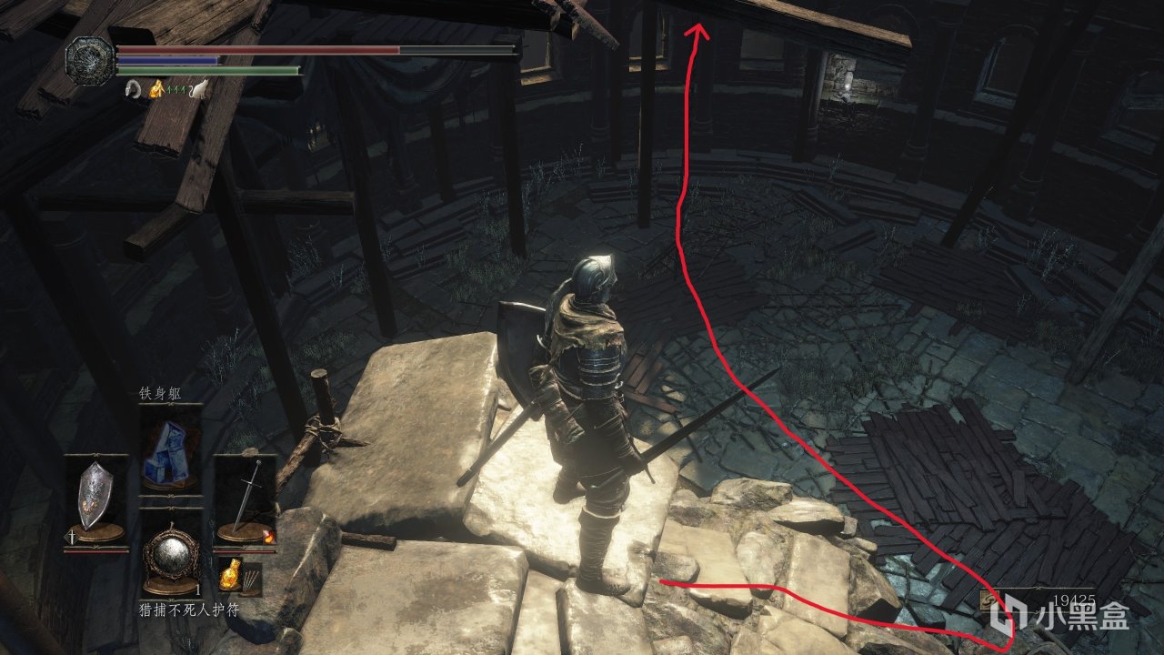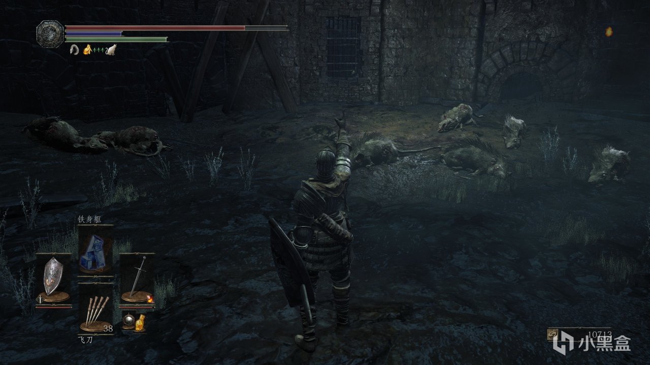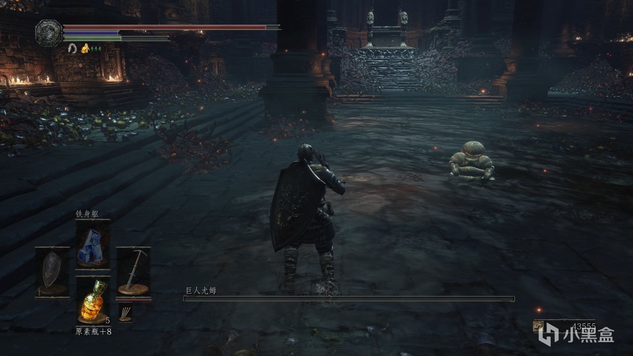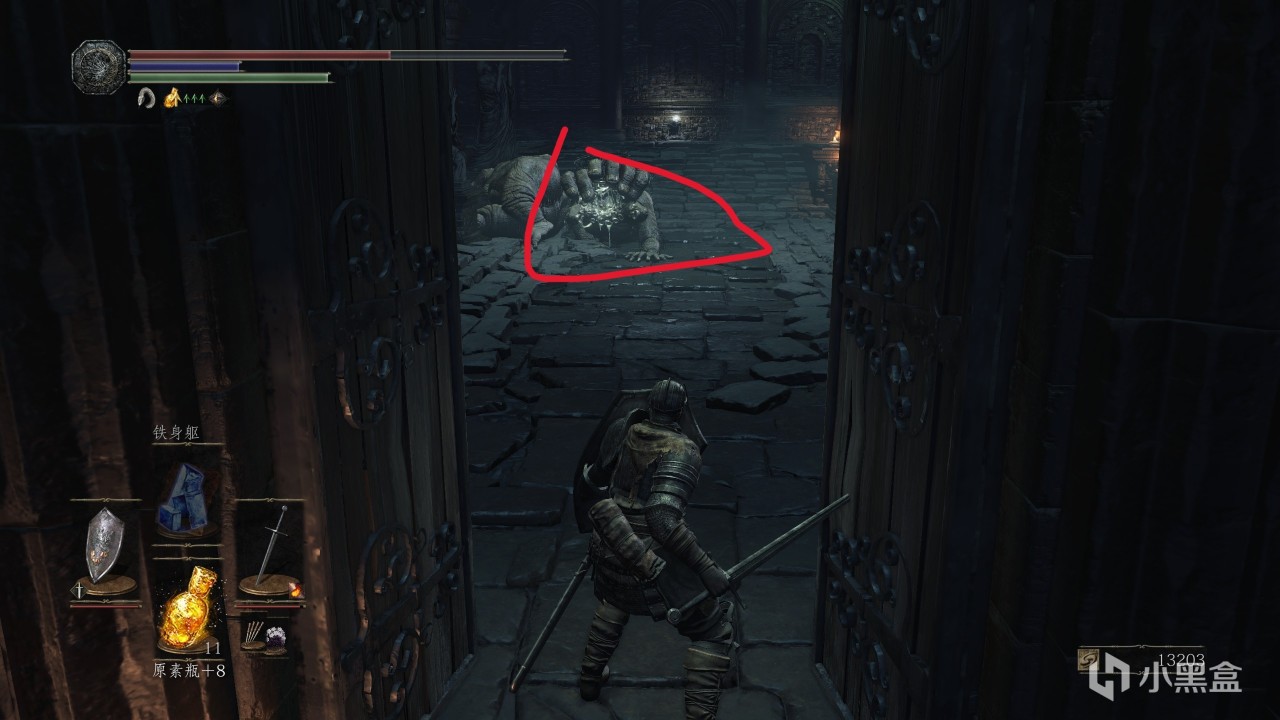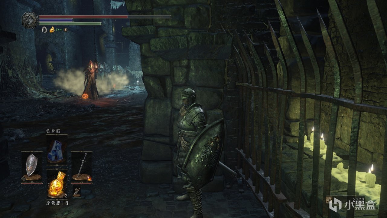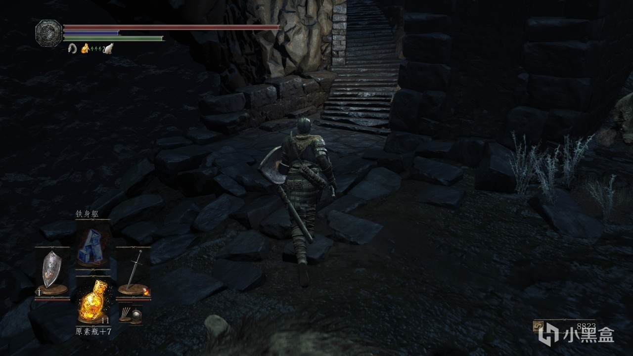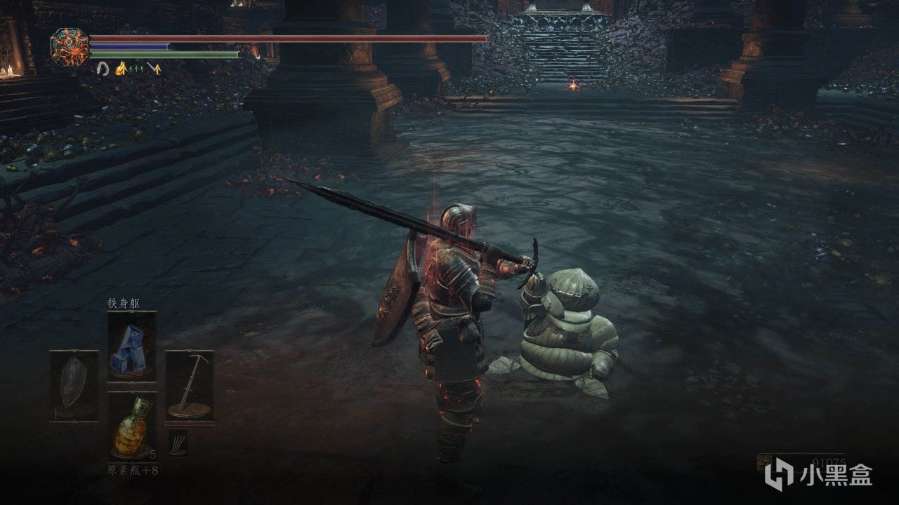 走到頭撿鑰匙(宮崎英高在這裏的設計就是讓你來回在地下監牢跑,屬於是沒活了,做不了大地圖了,讓你重複體驗,正常不從平臺跳木板只能從這個走廊跳到巨人腳下,然後又是發現洋蔥,找洋蔥)