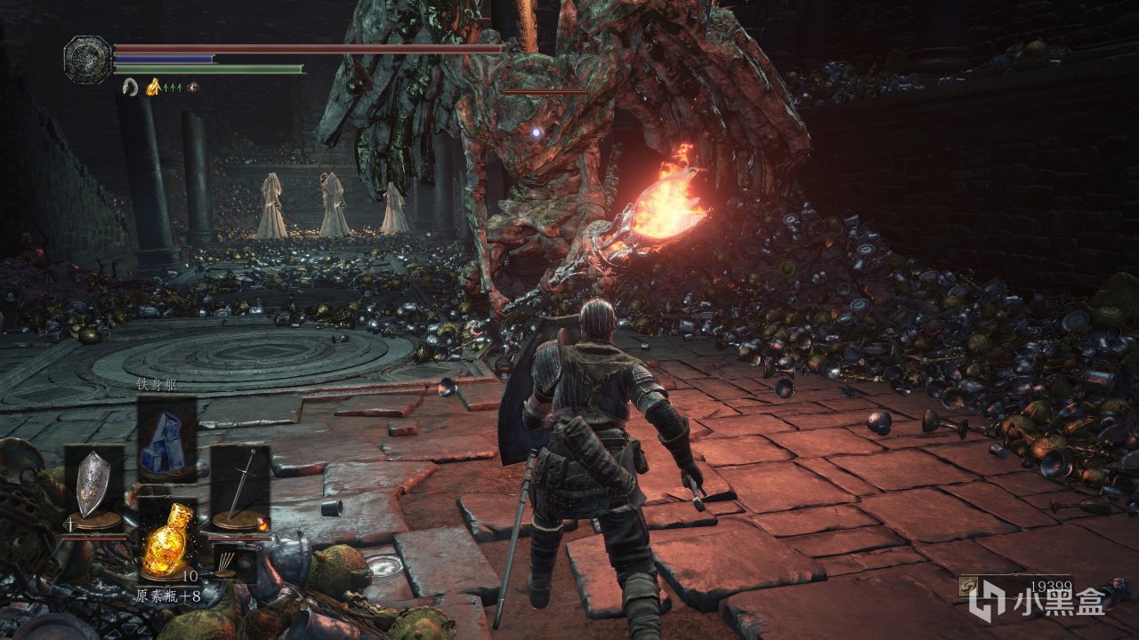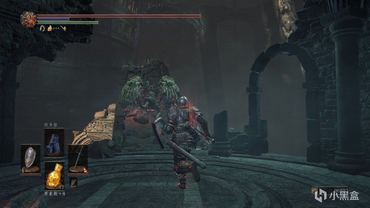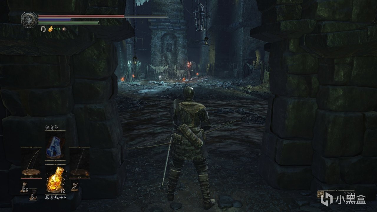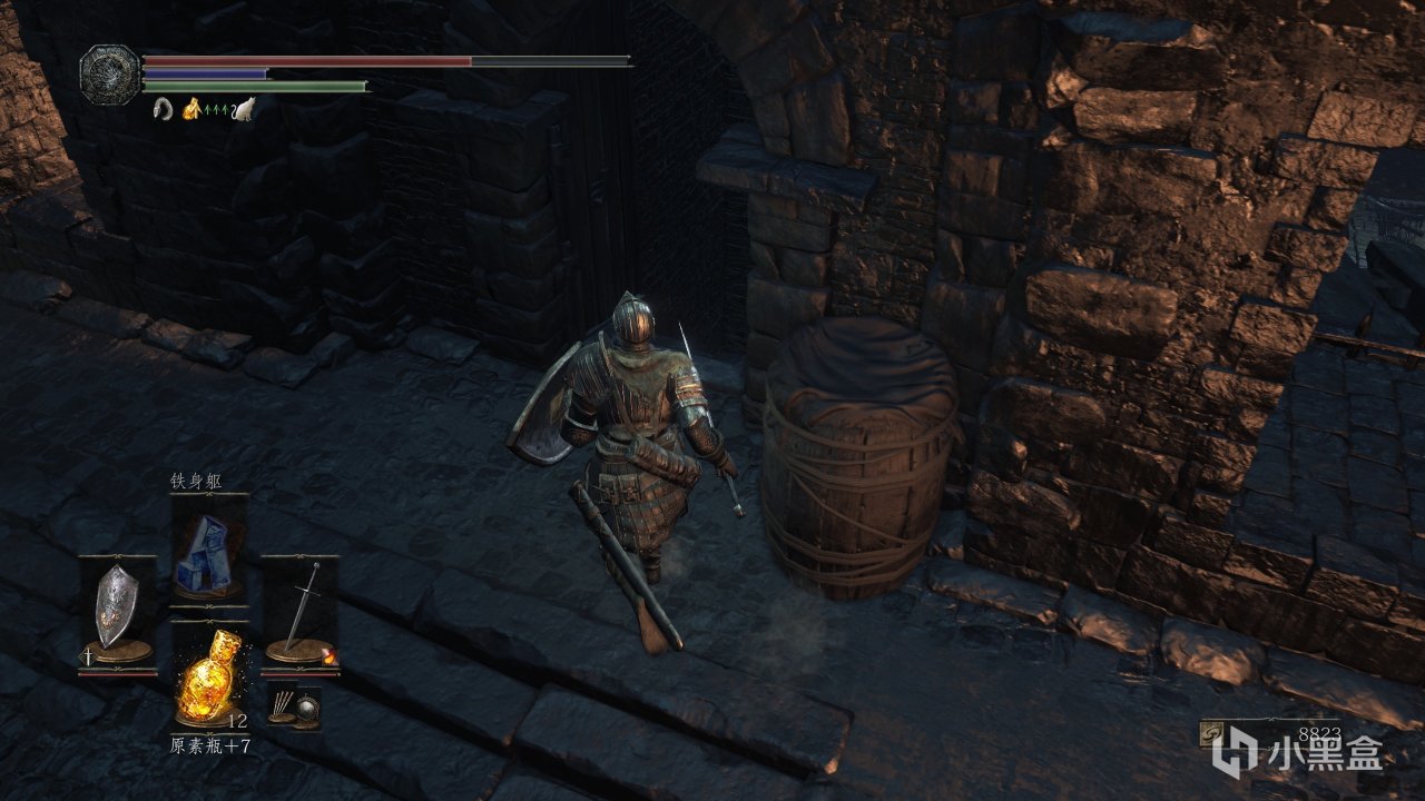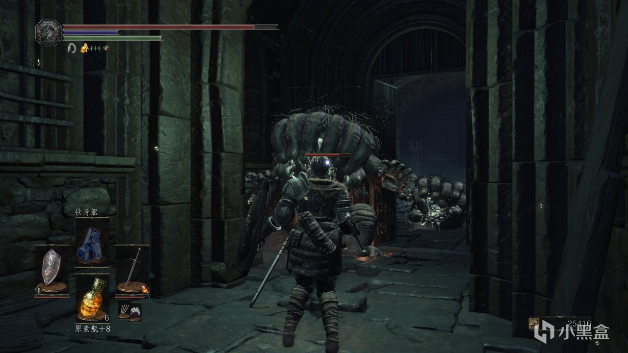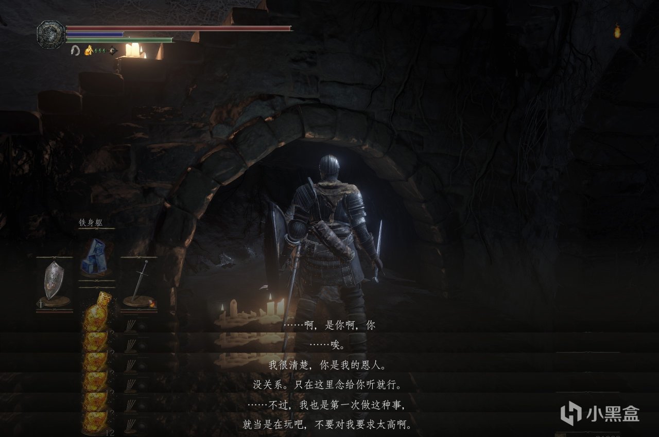 走到頭撿鑰匙(宮崎英高在這裏的設計就是讓你來回在地下監牢跑,屬於是沒活了,做不了大地圖了,讓你重複體驗,正常不從平臺跳木板只能從這個走廊跳到巨人腳下,然後又是發現洋蔥,找洋蔥)
