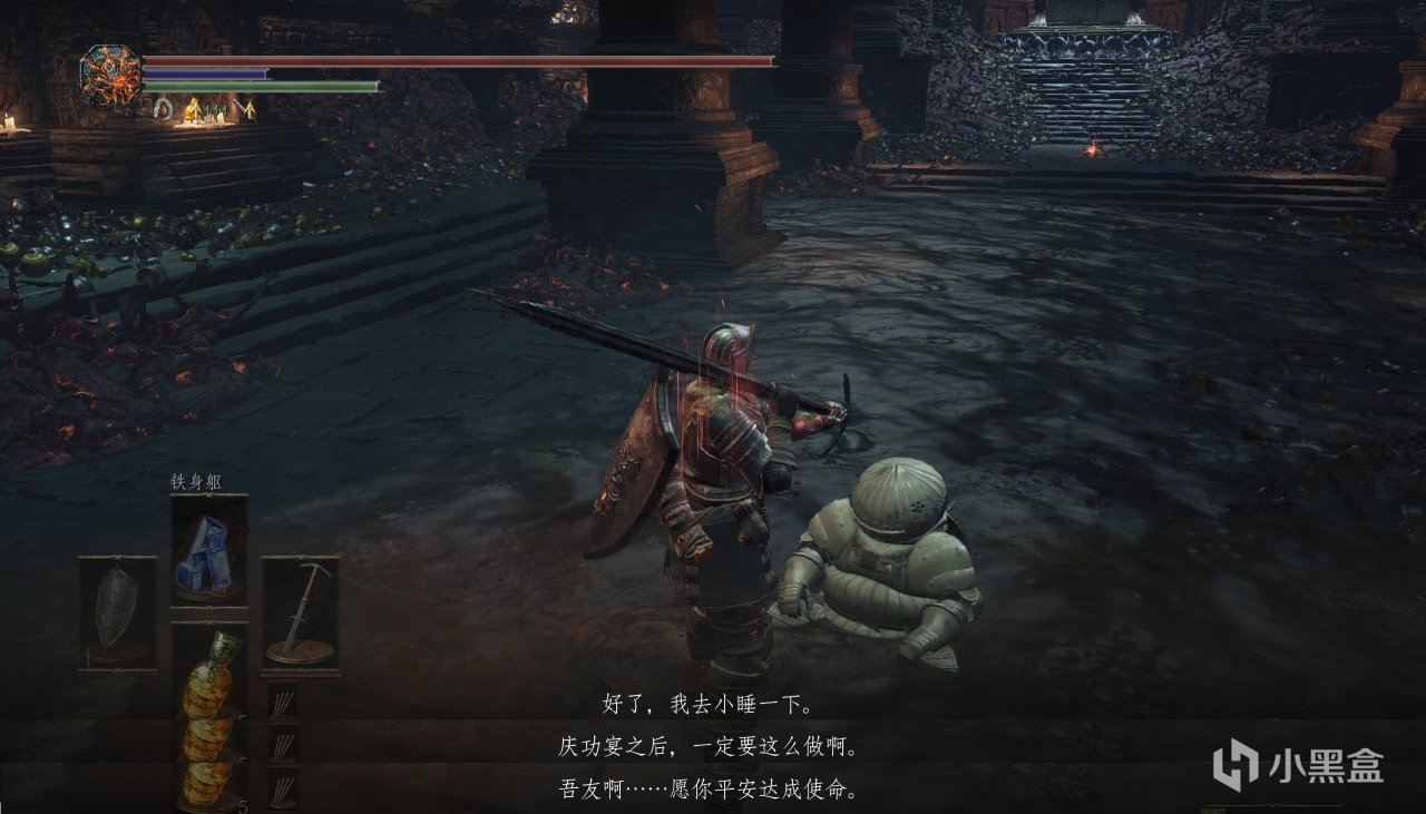 立刻boss房能聽到洋蔥自殺的聲音。不死人失去使命就會變成活屍,因爲人性一直在流失,沒有目標就沒辦法堅持下去了,爲了不傷人都會選擇自盡